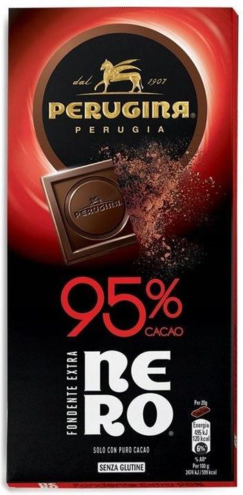 Perugina Nero czekolada gorzka 95% kakao - 85g Perugina Fondente Extra Nero 95% Cacao - Mistrzostwo doskonałej, ciemnej czekolady z 95% zawartością kakao zamknięte w tabliczce o idealnej grubości by poczuć jej intensywność wszystkimi zmysłami. Składniki: Pasta kakaowa, cukier, masło kakaowe, …