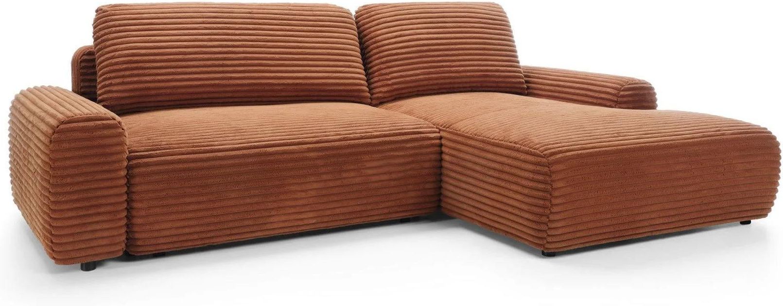 Narożnik Cord Ambience 09 Ceglasty Prawy to propozycja, która wniesie do wnętrza przytulność, komfort oraz funkcjonalność. Prezentowany mebel wypoczynkowy pomarańczowy wyróżnia się ceglastym odcieniem. Ciepłą barwę podkreśla przyjemna w dotyku i miękka struktura sztruksu, który pokrywa narożnik. Łatwy w pielęgnacji, jak również odporny na ścieranie, nadaje powierzchni charakterystyczny i strukturalny wygląd. Model ze stałymi podłokietnikami oraz dwiema poduszkami prezentuje kształt litery L. Produkt wyposażony został w pojemnik wewnętrzny oraz lekki mechanizm rozkładania przy użyciu oparcia. Narożnik z funkcją spania mierzy 264 cm szerokości, 87 cm wysokości oraz 162 cm głębokości. Oferta dotyczy wariantu prawostronnego.