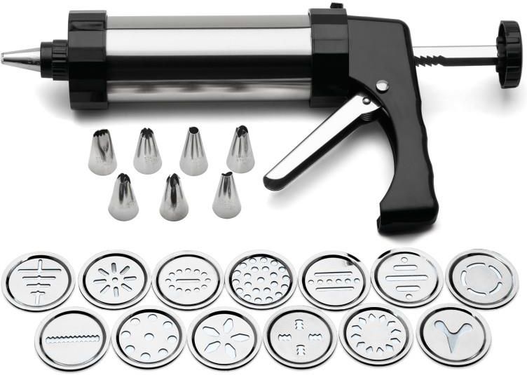 Pistolet Do Ciastek I Kremu - Weis: Twórz Wyjątkowe Wypieki Pistolet do ciastek i kremu marki Weis to niezastąpione narzędzie w każdej kuchni, które umożliwia tworzenie wyjątkowych wypieków. Dzięki temu innowacyjnemu produktowi, przygotowywanie ciastek i dekoracji staje się nie tylko proste, ale również przyjemne. Wysoka jakość materiałów, z których został wykonany, sprawia, że jest to produkt, który z pewnością spełni oczekiwania nawet najbardziej wymagających pasjonatów pieczenia. Solidna Konstrukcja i Wygoda Użytkowania Pistolet do ciastek i kremu Weis wykonany jest z wysokiej jakości stali nierdzewnej oraz trwałego tworzywa sztucznego. Takie połączenie zapewnia solidność oraz wygodę użytkowania. Dzięki ergonomicznemu kształtowi, obsługa narzędzia jedną ręką jest niezwykle komfortowa, co przyspiesza proces formowania ciasteczek i pozwala na kreatywne eksperymentowanie w kuchni. Innowacyjny Design dla Łatwego Użytkowania Innowacyjny design pistoletu zawiera przedni gwint oraz adapter do wymiany nasadek, co sprawia, że jego użytkowanie jest niezwykle przyjemne i intuicyjne. Dzięki różnorodnym nasadkom, które można łatwo wymieniać, masz możliwość tworzenia wielu rodzajów ciastek i dekoracji, dostosowanych do różnych okazji. Wszechstronność i Szeroki Zestaw Akcesoriów W zestawie z pistoletem do ciastek i kremu Weis znajduje się aż 8 tylek oraz 13 tarcz, co otwiera przed Tobą szerokie spectrum możliwości w tworzeniu wypieków. Możesz z łatwością przygotować zarówno tradycyjne ciasteczka, jak i bardziej skomplikowane dekoracje na torty i ciasta. Dzięki temu narzędziu stworzysz wyjątkowe słodkości, które zachwycą Twoich gości. Łatwość Czyszczenia i Utrzymania Pistolet do ciastek i kremu Weis jest również łatwy w czyszczeniu. Można go z powodzeniem myć w zmywarce, co znacząco ułatwia jego konserwację i pozwala zaoszczędzić czas po pieczeniu. To sprawia, że jest to idealne rozwiązanie dla osób, które cenią sobie nie tylko jakość, ale także wygodę w kuchni. Specyfikacja Techniczna Długość: 23,5 cm Szerokość: 14 cm Te kompaktowe wymiary sprawiają, że pistolet jest łatwy do przechowywania i nie zajmuje wiele miejsca w kuchennej szafce. Możesz go mieć zawsze pod ręką, gdy tylko przyjdzie ochota na pieczenie. Dlaczego Warto Wybrać Pistolet Do Ciastek I Kremu - Weis? Pistolet do ciastek i kremu Weis to nie tylko narzędzie, ale i inspiracja do kulinarnych przygód. Dzięki niemu stworzysz niepowtarzalne wypieki, które będą zachwycać wyglądem i smakiem. Sprawdzi się doskonale zarówno dla amatorów, jak i profesjonalistów, którzy pragną wzbogacić swoje umiejętności w zakresie dekoracji wypieków. Nie czekaj! Zainwestuj w pistolet do ciastek i kremu marki Weis i odkryj, jak łatwe i przyjemne może być pieczenie. Dzięki niemu Twoje wypieki zyskają nowy wymiar, a Ty będziesz mógł cieszyć się ich niezrównanym smakiem i wyglądem. Marka Weis - Gwarancja Jakości i Innowacji Marka Weis to synonim jakości i innowacji w dziedzinie akcesoriów kuchennych. Produkty tej marki charakteryzują się nie tylko funkcjonalnością, ale również nowoczesnym designem. Pistolet do ciastek i kremu Weis to doskonały przykład tego, jak wysokiej jakości narzędzie może ułatwić proces pieczenia i pozwolić na tworzenie wyjątkowych słodkości. Wybierając Weis, inwestujesz w produkty, które przetrwają próbę czasu i będą służyć Ci przez wiele lat.