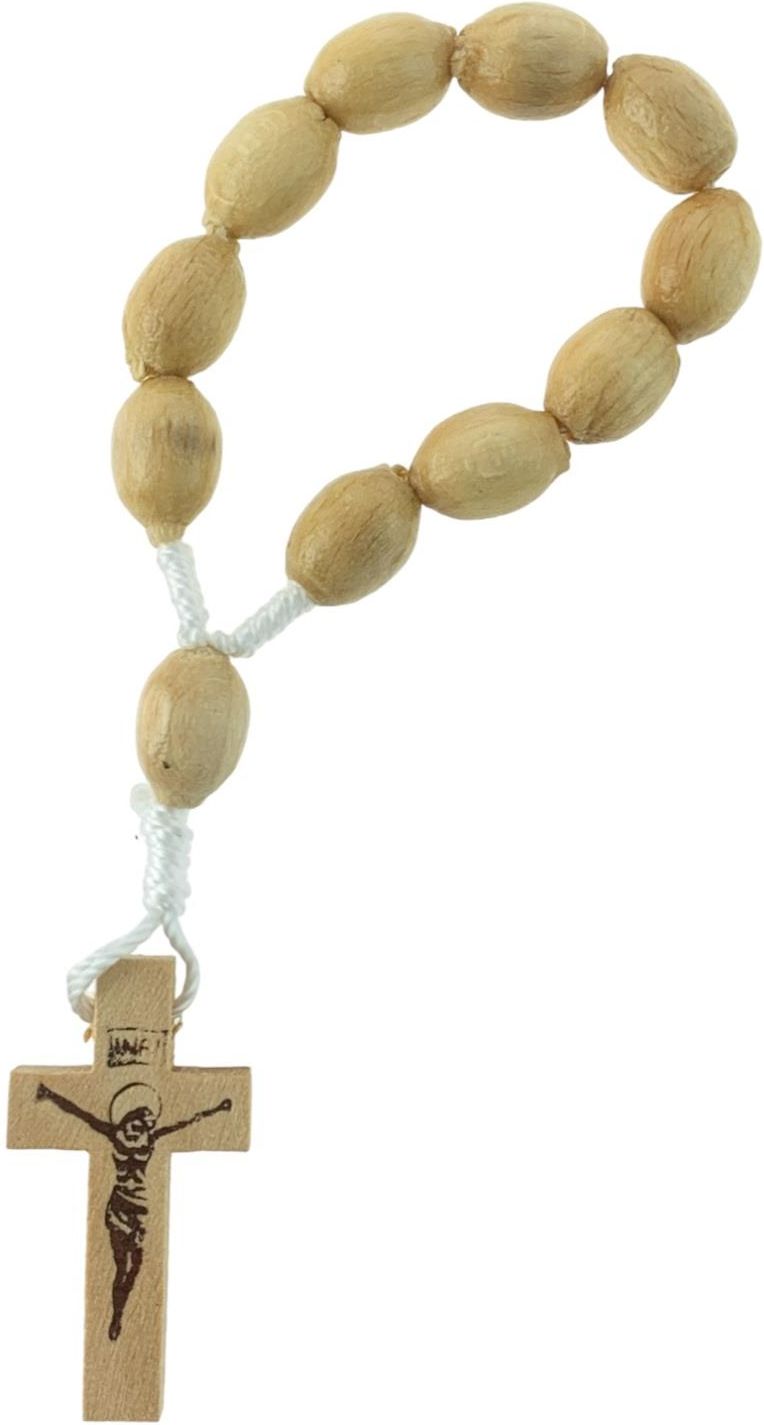 Różaniec drewniany duży, gruby koralik rozmiar 10, połączony sznurkiem z grubym węzłem.