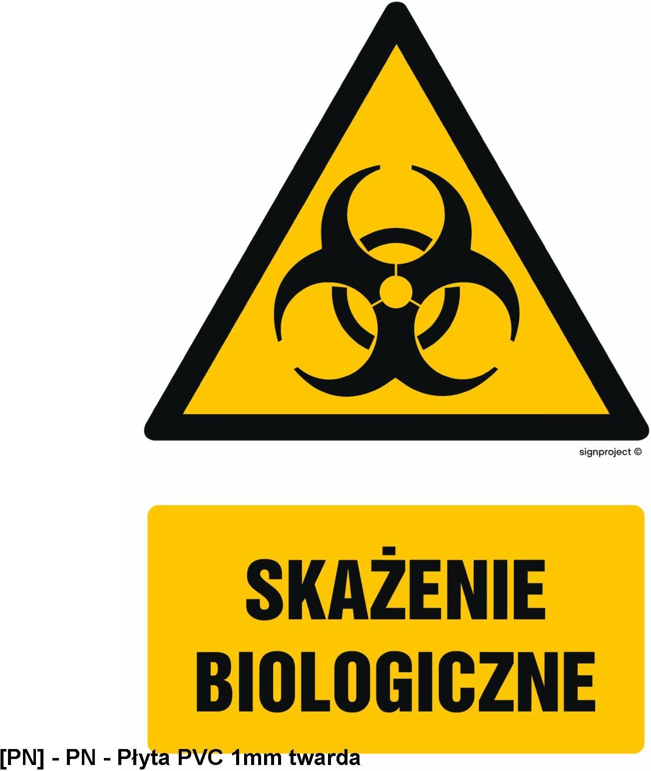 GF023 Znak „skażenie biologiczne” należy do oznakowania ostrzegawczego z opisem. ostrzega o niebezpieczeństwie i zagrożeniu wynikającym ze skażenia biologicznego występującego na konkretnym obszarze. znak „skażenie biologiczne” wymusza tym samym zachowanie szczególnej ostrożności, a nawet może oznaczać zakaz przebywania w tym miejscu osób do tego nieupoważnionych. tablica jest w kształcie prostokątnym. znajduje się na niej trójkątny znak z żółtym tłem oraz czarnym obramowaniem i piktogramem, a także czarny napis „skażenie biologiczne”. znak „skażenie biologiczne” może mieć wymiary: 5 x 7,5 cm. 10 x 15 cm. 15 x 22,5 cm. 20 x 30 cm. 25 x 37,5 cm. 30 x 45 cm. 35 x 52,5 cm. 50 x 75 cm. 70 x 105 cm Wykonujemy go na podłożach:. Folii samoprzylepnej (także z technologią fotoluminescencyjną). Folii podłogowej (także z technologią fotoluminescencyjną). Płycie sztywnej (także z technologią fotoluminescencyjną). Płycie TD fotoluminescencyjnejPN - Płyta PVC 1mm twarda. Dostępne podłoża: pn - płyta pvc 1mm twarda ks - folia podłogowa foto fs - folia samoprzylepna foto. ts - płyta td foto fn - folia samoprzylepna ps - płyta foto 1mm kn - folia podłogowa zwykła Marka: SIGNPROJECT