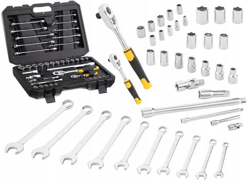 ZESTAW KLUCZY NASADEK Z GRZECHOTKAMI 1/4" 1/2" 41EL. STANLEY STMT82832-1 Stanley STMT82832-1 Zestaw Nasadek z Grzechotkami 1/4" i 1/2" - 41 Elementów Dlaczego warto wybrać Stanley STMT82832-1? Zestaw nasadek Stanley STMT82832-1 to kompletny i wszechstronny zestaw narzędzi, który spełni oczekiwania nawet najbardziej wymagających użytkowników. Wykonany z najwyższej jakości materiałów, zaprojektowany z myślą o maksymalnym komforcie i wydajności pracy. Niezależnie od tego, czy jesteś profesjonalistą, czy majsterkowiczem, ten zestaw narzędziowy jest idealnym wyborem do Twojego warsztatu. Najważniejsze cechy Niskoprofilowa dźwignia przełącznika zapobiega przypadkowemu przełączeniu, umożliwiając łatwą obsługę jedną ręką, co znacząco podnosi komfort pracy. Bi-materiałowa rękojeść gwarantuje doskonały chwyt, kontrolę i wygodę użytkowania nawet podczas długotrwałej pracy. Chromowane wykończenie – precyzyjna konstrukcja z wytrzymałym chromowanym wykończeniem zapewnia trwałość i odporność na korozję. 72-zębowa grzechotka z mechanizmem zapadkowym umożliwia pracę z przyrostem co 5° dla lepszego dostępu do trudno dostępnych miejsc. System szybkiego zwalniania – duży, płaski przycisk szybkiego zwalniania umożliwia szybkie i łatwe wyjmowanie nasadek. MaxiDrive – nowa generacja nasadek z profilem Maxidrive optymalizuje kontakt pomiędzy nasadką a nakrętką/śrubą, co zwiększa efektywność pracy oraz wydłuża żywotność narzędzi. Zawartość zestawu 10 nasadek sześciokątnych 1/4": 5,5 mm, 6 mm, 7 mm, 8 mm, 9 mm, 10 mm, 11 mm, 12 mm, 13 mm, 14 mm 2 przedłużki 1/4": 75 mm, 125 mm 1 przegub uniwersalny 1/4" 1 grzechotka 1/4" z 72 zębami 13 nasadek sześciokątnych 1/2": 10 mm, 11 mm, 12 mm, 13 mm, 14 mm, 15 mm, 16 mm, 17 mm, 18 mm, 19 mm, 21 mm, 22 mm, 24 mm 2 przedłużki 1/2": 75 mm, 250 mm 1 przegub uniwersalny 1/2" 10 płaskich kluczy: 8 mm, 10 mm, 11 mm, 12 mm, 13 mm, 14 mm, 16 mm, 17 mm, 18 mm, 19 mm Podsumowanie Stanley STMT82832-1 to inwestycja w narzędzia, które posłużą przez lata. Dzięki przemyślanemu projektowi, najwyższej jakości materiałom oraz ergonomicznym rozwiązaniom, praca staje się prostsza, szybsza i bardziej komfortowa. Wybierając ten zestaw, zyskujesz niezawodność, którą potwierdzają profesjonaliści na całym świecie. Nie czekaj - dodaj go do swojego warsztatu już dziś!