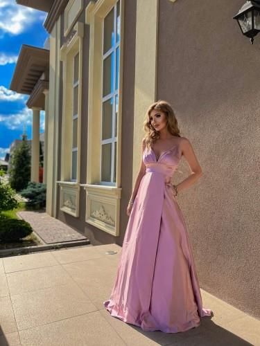 Sukienka maxi Wioletta kolor pudrowy róż Miechów