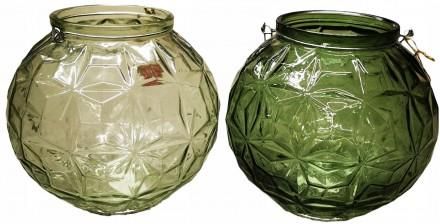 Parametry: Materiał wykonania: szkło Kolor dominujący: odcienie zieleni Zastosowanie: świecznik, wazon na kwiaty Wysokość: 21 cm Kształt: kula