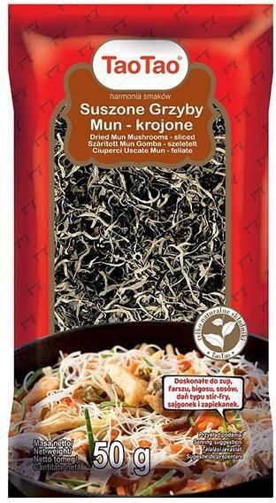 Grzyby Mun 50 g TaoTao Suszone grzyby azjatyckie TaoTao to grzyby mun o czarno-brązowym kolorze i pokarbowanej strukturze. Grzybki mun sa odmianą grzyba z rodziny uszakowatych, rosnącego na drzewach w strefie tropikalnej. Popularne i cenione w kuchni grzyby azjatyckie, stanowią doskonały dodatek do …
