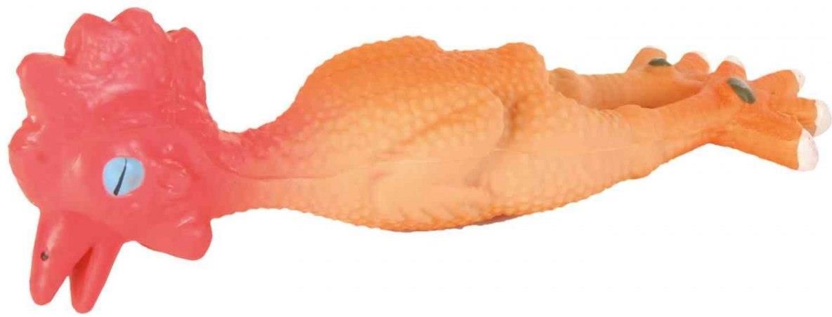Lateksowy kurczak to zabawka, która pobudzi wyobraźnię większości psów. Idealnie nadaje się do noszenia w pysku czy zabawy w aportowanie. Dzięki niej Twój merdacz zaspokoi naturalną potrzebę gryzienia, a także doświadczy przyjemności zabawy i okazji do aktywności fizycznej. Przy nacisku kurczak wydaje dźwięki, które wzbudzają ciekawość psa. Piszczałka zwiększa zaangażowanie czworonoga w zabawę. Zabawka dla psa marki Trixie wykonana została z wysokiej jakości lateksu. Jest łatwa w czyszczeniu-wystarczy umyć ją wodą z mydłem. Długość: 15 cm