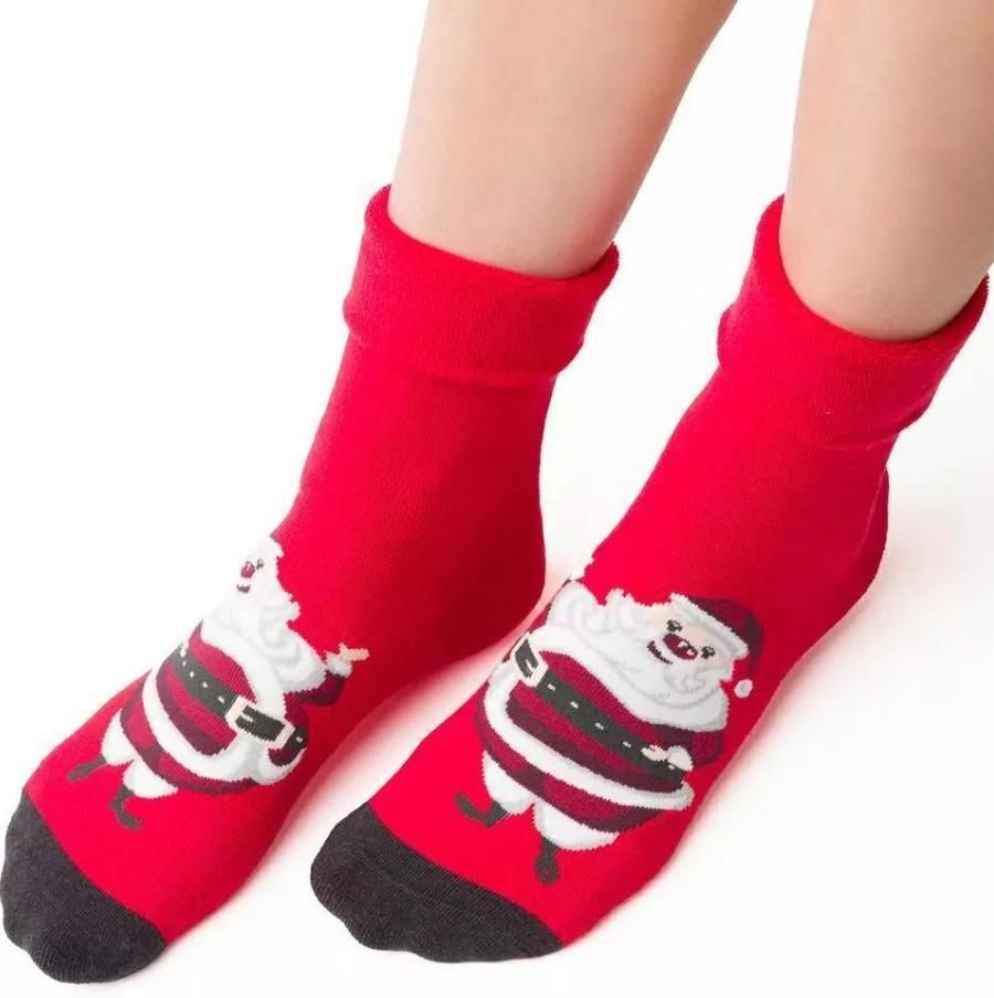 Zakostki damskie z dzianiny frotte wzór z Mikołajem 030 kolekcja Świąteczna Miechów