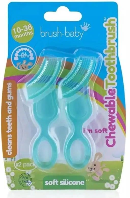 BRUSH-BABY Chewable Toothbrush Teal - gryzak (10-36 miesięcy) 2 PACK age range: 10-36 miesięcy color: Teal material: Silikonowe włosie usage: Dla niemowląt i dzieci Idealna pierwsza szczoteczka do zębów lub alternatywa dla niemowląt i małych dzieci, które żują szczoteczkę lub nie pozwalają myć …