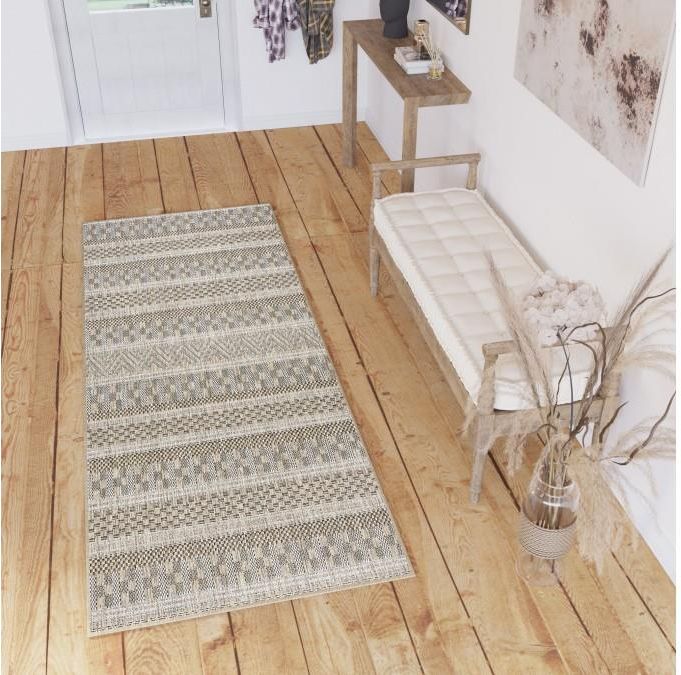 Dywan Chodnik sznurkowy Meli 00.85a brown z kolekcji sznurkowy to prawdziwa perełka dla miłośników klasycznego designu z nutą nowoczesności. Jego głównym kolorem jest ciepły, głęboki brąz, który nadaje wnętrzu przytulności i elegancji. Kolory dodatkowe, subtelnie wplecione w wzór, to odcienie beżu i szarości, które dodają dywanowi głębi i dynamiki. Wzór dywanu jest geometryczny, składający się z powtarzających się pasów, które tworzą harmonijną kompozycję. Każdy pas jest inny, co sprawia, że dywan nie jest monotonny, a jego wzór przyciąga wzrok. Linie i kształty przypominają tradycyjne wzory tkackie, co może nawiązywać do kultury ludowej, jednocześnie zachowując nowoczesny charakter. Dywan ma prostokątny kształt, który doskonale wpasowuje się w różne przestrzenie, od salonów po przedpokoje. Nie posiada frędzli, co dodaje mu minimalistycznego wyrazu. Jeśli szukasz inspiracji na urządzenie wnętrza z tym dywanem, wyobraź sobie przestronny salon z wysokimi oknami, przez które wpada naturalne światło. Dywan Chodnik sznurkowy Meli 00.85a brown może leżeć w centralnym miejscu, podkreślając strefę wypoczynkową. Ustaw na nim elegancką sofę w odcieniach szarości lub beżu, a obok niej drewniany stolik kawowy z designerskimi dodatkami, jak minimalistyczna lampa stołowa czy wazon z suszonymi kwiatami. Ściany mogą zdobić obrazy w neutralnych barwach, które będą współgrać z kolorystyką dywanu. W takim wnętrzu dywan nie tylko będzie funkcjonalnym elementem, ale również centralnym punktem dekoracyjnym, dodającym ciepła i stylu. Możesz też wykorzystać go w przedpokoju, gdzie jego geometryczny wzór będzie pięknie kontrastował z prostotą białych ścian i drewnianych podłóg, tworząc przytulne i zapraszające wejście do domu. Zdecydowanie polecamy zakup dywanu Chodnik sznurkowy Meli 00.85a brown osobom, które cenią sobie połączenie tradycji z nowoczesnością, a także tym, którzy szukają elementu dekoracyjnego, który będzie zarówno funkcjonalny, jak i estetyczny. Jego uniwersalna kolorystyka i wzór sprawiają, że może on przypaść do gustu zarówno miłośnikom klasyki, jak i nowoczesnych trendów. Nie zwlekaj, dodaj ten dywan do swojego wnętrza i ciesz się jego wyjątkowym charakterem!