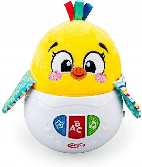 Uroczy kurczaczek w zabawkowej skorupce buja się wesoło, odtwarzając przy tym przeróżne dźwięki. Leoś zna kilka krótkich rymowanek oraz wesołe piosenki i melodie, a gdy maluch pchnie go do tyłu lub w bok, kurczaczek zakołysze się na podstawce i wróci do bazowej pozycji. Zabawka wyposażona jest w trzy przyciski, różniące się kolorem i obrazkiem, a każdy z nich aktywuje inny tryb. Kwiatek uruchamia wierszyki, symbol ABC – piosenki w języku polskim, a nutka – wesołe melodie. Produkt przeznaczony jest dla dzieci od 6 miesiąca życia. Cechy produktu: zabawka mówi po polsku kurczak kołysze się na boki, a bujaniu towarzyszą wesołe zwroty; materiałowe metki; 3 aktywne przyciski uruchamiające 3 tryby zabawy: tryb wierszyków, tryb piosenek lub tryb melodii; wyłącznik dźwięku (On/Off); baterie: 3 x AG13 (w zestawie); wiek: 6m+.