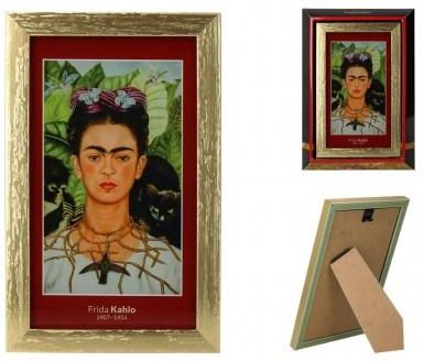 Obrazek - Frida Kahlo Carmani Mały obrazek do powieszenia na ścianie, który nada pomieszczeniu wyjątkowego charakteru. Idealny dla miłośników malarstwa. Wykonany ze szkła, w ramce. Wymiary: 13x21cm z ramką, bez ramki: 10,5x18,5cm. Zapakowany w ozdobne pudełko oraz zabezpieczony folią. Rozmiar: 13x21cm Waga netto: 0 kg Kraj pochodzenia: Polska