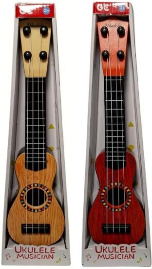 Ukulele dla dzieci dostępne w dwóch wersjach kolorystycznych, kolor wybierany losowo. Cena dotyczy jednej sztuki. Zabawka przeznaczona dla dzieci od lat 3. Produkt zapakowany w kartonowe pudełko. Podane wymiary są wymiarami opakowania.