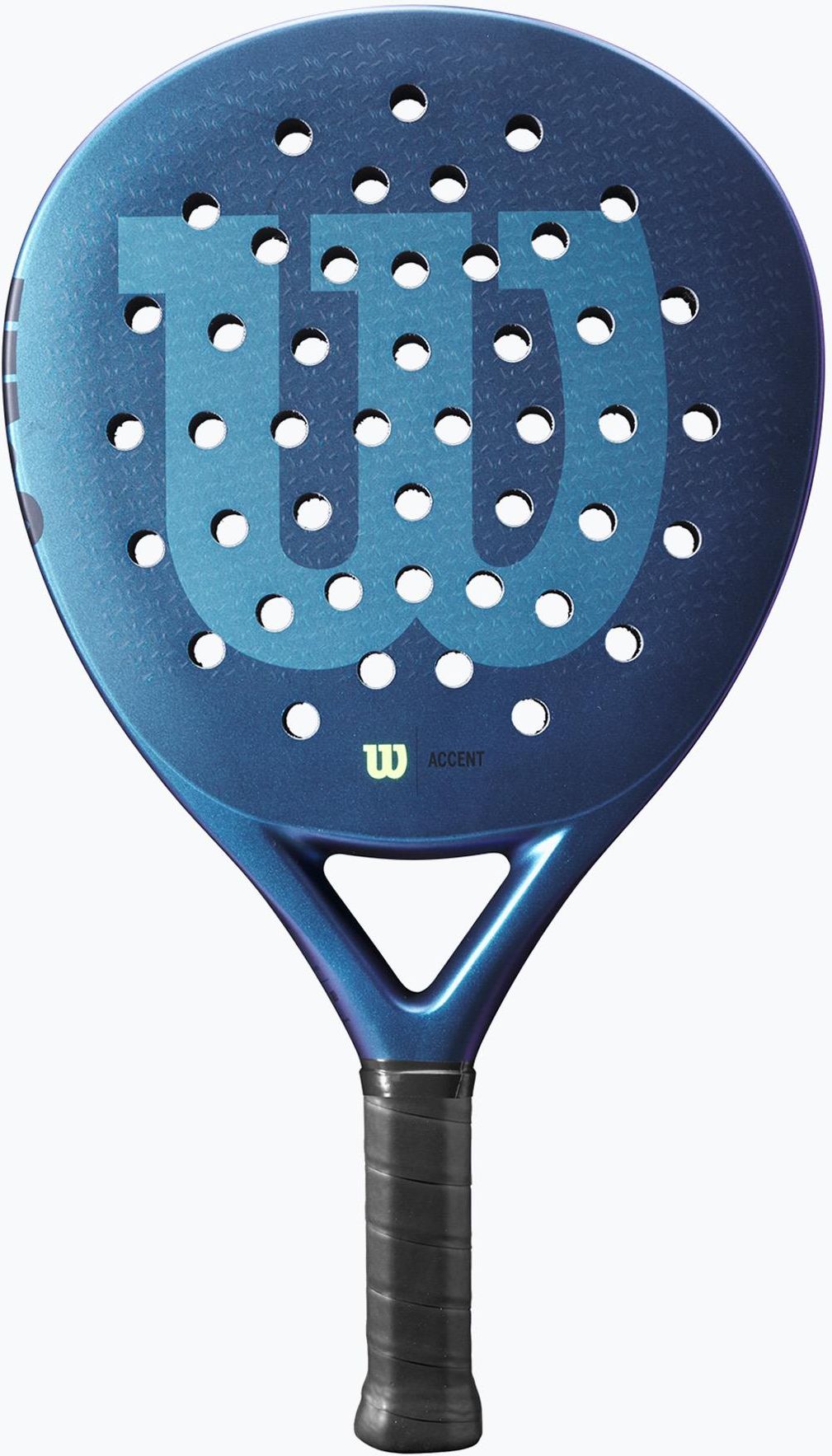 To jest automatyczne tłumaczenie wygenerowane przez software:Idealna rakieta dla entuzjastów padla, która generuje wygodną moc bez wysiłku. Rodzina Accent, nowa w kolekcji rakiet do padla Wilsona, znana jest z łatwego generowania mocy i najwyższego komfortu. Rakieta Accent Padel to idealny wybór dla zwykłych graczy poszukujących łatwej mocy i najwyższego komfortu. Technologie, które uzupełniają te cechy, obejmują miękką piankę EVA, kształt łzy i wzmocnioną twarz. Zawiera odłączany przewód na nadgarstek, który gracze mogą wymienić w dowolnym momencie treningu lub meczu. Kompozyt z włókna węglowego Mieszanka węgla i tkanego włókna szklanego zapewnia lekkość i wytwarza większą moc niż wiosła z włókna szklanego. Miękka pianka EVA Zapewnia amortyzację i imponującą amortyzację, zapewniając skuteczne połączenie komfortu i lekkości. Komfortowa tekstura Grubsza tekstura zwiększa czas kontaktu z powierzchnią padla, zapewniając efekt amortyzacji, który zapewnia najwyższy komfort i moc bez wysiłku przy każdym uderzeniu. Krawędź Nieskończoności Rewolucyjna wklęsła konstrukcja wzdłuż krawędzi wiosła zwiększa czuły punkt i powierzchnię gry, zwiększając moc. Wzmocniona twarz Kształt zwiększa amortyzację na całej powierzchni uderzenia i zwęża profil, aby zredukować wibracje i poprawić czuły punkt. Uchwyt tarczy uderzeniowej Unikalna mieszanka PU i Iso-Zorb zapewnia doskonałe połączenie przyczepności i komfortu amortyzacji. Odpinany sznurek na nadgarstek Konstrukcja umożliwia łatwe mocowanie i odłączanie od rączki rakiety padel, co umożliwia użytkownikowi łatwą wymianę lub personalizację w zależności od preferowanego typu i koloru sznurka na nadgarstek. Ekologiczna czapka z daszkiem Skład nylonu na bazie biologicznej Agiplast zmniejsza całkowitą ilość materiału użytego w dolniku o 20%, zapewniając bardziej zrównoważony ślad. Dane techniczne Balans: 260 mm Belka: 38 mm Typ rdzenia: miękka EVA Długość: 455 mm Kształt wiosła: kropla łez Waga: 361 g *bez paska na nadgarstek