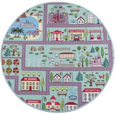 Dywan MULTIDECOR Stella Ulice 120 cm Morski to gwarancja wesołej i dziecięcej zabawy oraz wsparcie w nauce. Dywan z ulicami to doskonały element wnętrza pokoju dziecięcego, który zamieni jego podłogę w niezwykły tor wyścigowy dla samochodów lub krainę dla bajkowych postaci.
