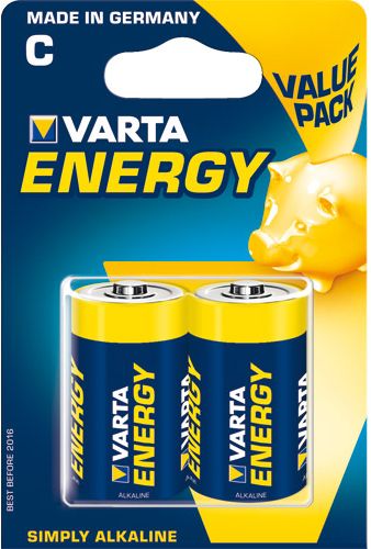 Bateria alkaliczna VARTA ENERGY LR14 rozmiar C Oryginalny produkt jednego z najbardziej cenionych producentów baterii - firmy VARTA. Sprawdzają się idealnie w urządzeniach o małym zapotrzebowaniu na energię, np. pilotach, zegarach ściennych, radioodbiornikach. Wyróżniają się długim czasem działania i niezawodną energią. Dane techniczne: Producent: VARTA Rozmiar: C Napięcie nominalne: 1,5V Wymiary: 26,1 x 50mm Waga: 69g Data ważności: 2021r Oznaczenia innych producentów: LR14, C, MN1400, E39, Baby, AM2, E93 Karta katalogowa