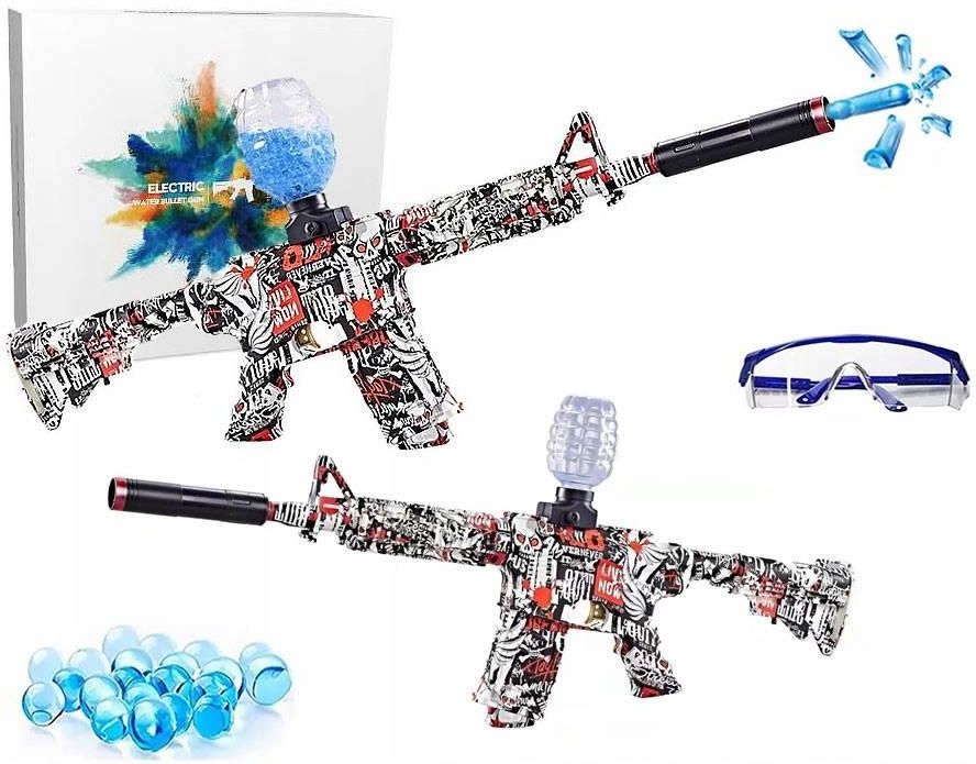 Aig Pistolet Karabin Duży Elektryczny Na Kulki Żelowe Wysokiej jakości pistolet elektryczny na akumulator + pełne wyposażenie to idealny prezent dla chłopca w każdym wieku! Zestaw zawiera wszystkie niezbędne elementy. Wystarczy wpiąć akumulator, użyć kulek i gotowe! W opakowaniu znajdziesz aż 8000 wodnych naboi. Są w pełni bezpieczne, rozbijają się o przeszkodzę dzięki czemu można używać ich także wewnątrz pomieszczenia. Dołączone do zestawu okulary dodatkowo zwiększą bezpieczeństwo podczas strzelaniny. Najważniejsze cechy produktu: Wysoka jakość wykonania Lekka konstrukcja Bogate wyposażenie Automat – strzela seriami Amunicja – bezpieczne kulki żelowe 7/8 mm Zasięg ok. 20-25 metrów Duża ilość kulek pozwala na wiele godzin świetnej zabawy! Kulki należy rozrobić samodzielnie z pomocą wody. Naboje wsypujemy do naczynia i zalewamy wodą. Muszą być całkowicie zamoczone. Czas w jakim pęcznieją kulki to ok 3-4h. Średnica rozrobionej amunicja powinna wynosić 7/8mm. Zabawa w strzelca pomoże rozładować energię i wzmocni kondycję fizyczną Twojego dziecka. Wspomoże rozwój koordynacji wzrokowo ruchowej a także uczyskupienia uwagi i skoncentrowania. Specyfikacja: Wiek: 14+ Materiał: tworzywo ABS Napęd sprężynowy Zasięg: ok. 20-25 metrów Kulki do samodzielnego rozrobienia w wodzie Akumulator 500mAh 6V wielokrotnego ładowania Wymiary złożonego pistoletu: 75 x 24 x 3,5cm (dł. x wys. x szer.) Wymiary opakowania: 28 x 25 x 9cm (dł. x wys. x szer.) W skład zestawu wchodzą: Karabin automatyczny Lufa Granat na kulki Okulary ochronne Odkręcany tłumik Akumulator 500mAh 6V wielokrotnego ładowania Kabel USB do ładowania 8000 szt. kulek do samodzielnego zrobienia Kolorowe opakowanie – idealne na PREZENT