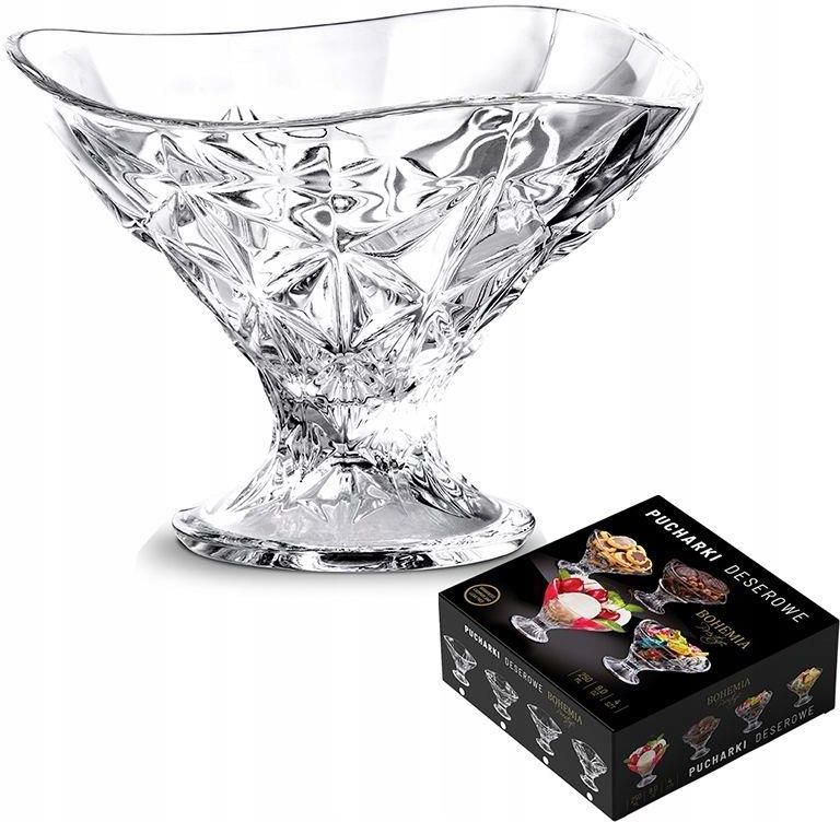 BOHEMIA PRESTIGE KOMPLET PUCHARKÓW DO LODÓW 4SZT Pucharki do lodów komplet 4 sztuk Bohemia Prestige Pucharki deserowe z wysokiej jakości ☑️➡️ szkła kryształowego są niezastąpionym dodatek w Twoim domu, idealne do serwowania lodów, deserów oraz do przechowywania słodyczy. Ich ☑️➡️ elegancki design dodaje blasku każdemu stołowi, a czekoladki, cukierki czy ciastka prezentują się w nich wyjątkowo atrakcyjnie. Dostępne w czterech unikalnych wzorach, pucharki emanują ponadczasowym stylem i charakteryzują się wysoką jakością wykonania. Ich grawery, wykraczające poza czas, dodają im niepowtarzalnego uroku, który z pewnością zostanie zauważony przez Twoich gości. To nie tylko praktyczny przedmiot, ale także wyraz luksusu i gustu, który podkreśli wyjątkowość każdej okazji. Cechy produktu Wykonane z trwałego szkła kryształowego Nadają się do serwowania lodów, deserów i przechowywania słodyczy Klasyczny design, który pasuje do każdego stołu Ozdobione wyjątkowym wzorem graweru Pięknie się błyszczą na stole Solidna konstrukcja, zapewnia trwałość Doskonałe na elegancki prezent Szczegóły Pojemność: 250 ml Opakowanie: 4 sztuki