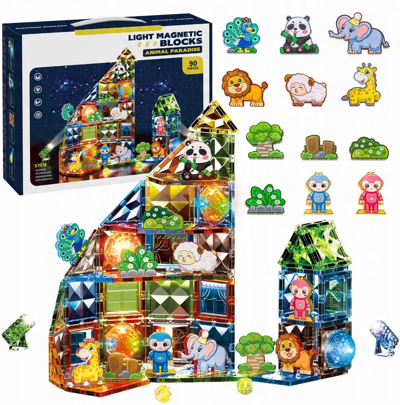 Klocki Magnetyczne Zoo Dla Dzieci Zwierzątka Świecący Zestaw Led 90 El Międzyrzec Podlaski