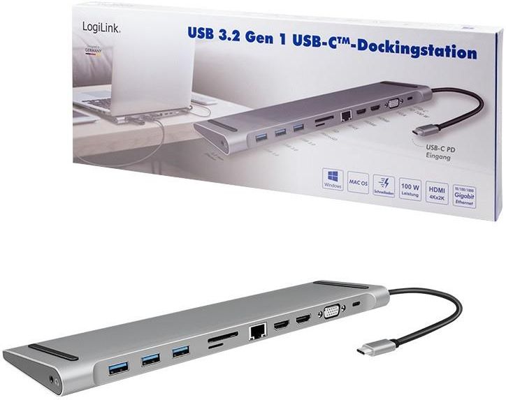 LogiLink UA0373 - USB 3.2 (Gen 1) stacja dokująca z 11 portami i PD (Power Delivery) 100W, 3x USB / 2x HDMI / 1x VGA / 1x czytnik kart / 1x RJ45 / 1x 3,5mm / czarny Producent: 2direct GmbH Stacja dokująca LogiLink UA0373 to doskonałe rozwiązanie dla użytkowników, którzy potrzebują wielu portów w jednym urządzeniu. Wyposażona w 11 portów, w tym 3 x USB, 2 x HDMI, 1 x VGA, czytnik kart, RJ45 oraz 3,5mm audio, pozwala połączyć do 11 urządzeń jednocześnie. Idealna dla osób potrzebujących zwiększonej funkcjonalności w pracy czy rozrywce. Ta stacja dokująca obsługuje USB Power Delivery (do 100W), rozdzielczość UHD 4K@30 Hz przez HDMI, Full HD 1080p@60 Hz przez VGA oraz szybką transmisję danych do 5 Gbit/s. Dodatkowo, można podłączyć słuchawki i karty SD o pojemności do 2TB. Wszystko to zapakowane w aluminiową obudowę z antypoślizgowymi gumowymi paskami. Stacja dokująca LogiLink UA0373 to doskonałe rozwiązanie dla posiadaczy laptopów i tabletów, którzy potrzebują rozszerzenia ilości portów. Dzięki zgodności z systemami Windows i Mac OS oraz kompaktowym wymiarom, stacja dokująca zapewnia łatwą obsługę i mobilność. Odkryj nowy sposób na podłączanie wielu urządzeń jednocześnie! Łączy do 11 urządzeń za pomocą jednego kabla USB-C (0,2 m) z laptopem/tabletem – przyłącze 1: USB Type-C/M – złącze 2: USB-C PD/F + 3 x USB 3.0/F + 2 x HDMI A/F + VGA + 3,5 mm/F + RJ45/F + SD/Micro SD Obsługuje USB Power Delivery (USB-PD 3.0) do ładowania/obsługi urządzeń zewnętrznych do 100 W – obsługuje MST (Multi-Stream Transmission) w systemie Windows – obsługuje rozdzielczość UHD 4K@30 Hz (3840 x 2160 dpi) przez HDMI z HEC, CEC i HDCP Obsługuje rozdzielczość Full HD 1080p@60 Hz (1900x1200 dpi) przez VGA - obsługuje równoczesne korzystanie z VGA/HDMI i HDMI/HDMI - szybka transmisja danych do 5 Gbit/s Obsługuje słuchawki i zestawy słuchawkowe – obsługuje SD/SDHC/SDXC o pojemności do 2 TB (SD v3.0, UHS-I, MMC) – Plug and Play, kompatybilny z Windows i Mac OS Aluminiowa obudowa z antypoślizgowymi gumowymi paskami - Wymiary produktu: 28 x 8 x 1,7 cm - Opakowanie: kolorowe pudełko język: english, english wszystkie porty hdmi: 2 waga przedmiotu: 240 grams punkt znaku wypunktowania: Łączy do 11 urządzeń za pomocą jednego kabla USB-C (0,2 m) z laptopem/tabletem – przyłącze 1: USB Type-C/M – złącze 2: USB-C PD/F + 3 x USB 3.0/F + 2 x HDMI A/F + VGA + 3,5 mm/F + RJ45/F + SD/Micro SD, Obsługuje USB Power Delivery (USB-PD 3.0) do ładowania/obsługi urządzeń zewnętrznych do 100 W – obsługuje MST (Multi-Stream Transmission) w systemie Windows – obsługuje rozdzielczość UHD 4K@30 Hz (3840 x 2160 dpi) przez HDMI z HEC, CEC i HDCP, Obsługuje rozdzielczość Full HD 1080p@60 Hz (1900x1200 dpi) przez VGA - obsługuje równoczesne korzystanie z VGA/HDMI i HDMI/HDMI - szybka transmisja danych do 5 Gbit/s, Obsługuje słuchawki i zestawy słuchawkowe – obsługuje SD/SDHC/SDXC o pojemności do 2 TB (SD v3.0, UHS-I, MMC) – Plug and Play, kompatybilny z Windows i Mac OS, Aluminiowa obudowa z antypoślizgowymi gumowymi paskami - Wymiary produktu: 28 x 8 x 1,7 cm - Opakowanie: kolorowe pudełko marka: LogiLink poziom opakowania: unit Liczba przedmiotów: 1 numer części: UA0373 kolor: srebro waga opakowania przedmiotu: 0.416 kilograms producent: 2direct GmbH łącznie portów USB: 3 zewnętrznie przypisany identyfikator produktu: 4052792062847 zalecane węzły przeglądania: 20788826031 numer modelu: UA0373 nazwa przedmiotu: LogiLink UA0373 - USB 3.2 (Gen 1) stacja dokująca z 11 portami i PD (Power Delivery) 100W, 3x USB / 2x HDMI / 1x VGA / 1x czytnik kart / 1x RJ45 / 1x 3,5mm / czarny data premiery: 2020-10-08T00:00:01Z data uruchomienia strony produktu: 2021-02-25T01:33:02.826Z kompatybilne urządzenia: MacBook Pro, MacBook Air liczba portów: 11