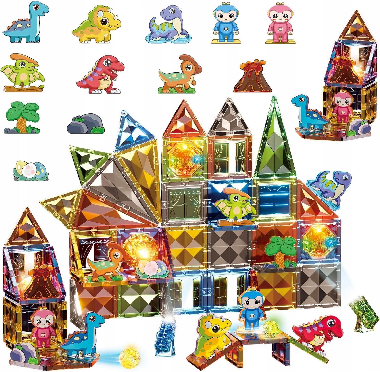 Magnetyczne Klocki Konstrukcyjne Świecący Zestaw Dinozaury Magnesy Led 98El Międzyrzec Podlaski