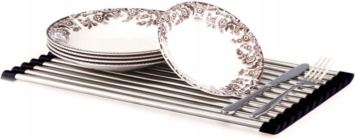 Ociekacz zwijany na zlew do naczyń, warzyw, owoców KAMILLE KM-7009 Zwijany ociekacz Kamille to przydatny gadżet do kuchni, który pomaga w suszeniu naczyń bezpośrednio po umyciu. Ociekacz pomaga utrzymać porządek na blacie kuchennym, umożliwiając organizowane i suszenie naczyń. Dzięki niemu woda z naczyń nie rozlewa się, co przyczynia się do utrzymania czystości i porządku. Ociekacz kuchenny został wykonany z materiałów, które są trwałe, może więc służyć przez długi czas. Ociekacz posiada silikonowe obrzeża chroniące powierzchnie zlewów i zlewozmywaków przed zarysowaniami. Matę można używać również jako podstawkę pod gorące garnki i naczynia. Ociekacz jest zwijany w rulon, dzięki czemu nie zajmuje dużo miejsca podczas przechowywania. Matę bez problemu przechowasz nawet w małej szafce. Świetnie nadaje się do osuszanie naczyń, warzyw i owoców, a także do dekorowania ciast. Cechy produktu nowoczesny design solidna konstrukcja materiał wykonania - stal, silikon silikonowe obrzeża ułatwiają umieszczenie na zlewozmywaku możliwość zwijania ułatwia przechowywanie funkcjonalne zastosowanie idealna do mycia warzyw i owoców, suszenia naczyń nadaje się pod gorące garnki pasuje do każdego zlewu Wymiary długość - 40 cm szerokość - 23 cm wysokość - 1 cm Produkt fabrycznie nowy, nieużywany, wysokiej jakości i znajduje się w oryginalnym opakowaniu.