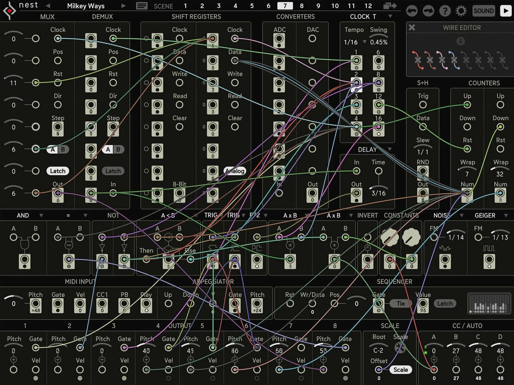 Sugar Bytes Nest - Modułowa wtyczka sekwencera (do pobrania) Generuje do 8 głosów MIDI, które mogą być routowane do 4 miejsc docelowych Ponad 20 różnych modułów, takich jak rejestr Shift lub multiplekser, narzędzia logiczne, arpeggiator i wiele innych Do tworzenia własnych złożonych sekwencerów …