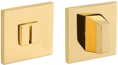 Szyld Rozeta Blokada WC Tupai 4040 5SQ-01 4mm/60mm, złoto Szyld Rozeta Blokada WC Tupai dedykowany do klamek na szyldach kwadratowych o grubości 5mm. Szyldy/Rozety dostępne w bogatej gamie kolorystycznej odpowiadającej wszystkim wykończeniom klamek. Rozety, szyldy dodatkowe do klamek firmy Tupai na kwadratowych szyldach wyróżnia precyzja wykonania oraz solidna metalowa konstrukcja adapterów montażowych, co gwarantuje komfortowe użytkowanie każdego egzemplarza. Maskownica rozety mocowana jest na wcisk, dzięki czemu prezentuje się na skrzydle drzwiowym wyjątkowo estetycznie. Zestaw zawiera: 2 rozety maskujące, 2 adaptery montażowe, pokrętło łazienkowe z trzpieniem 4x4 mm, 2 śruby przelotowe M4, 1 docisk imbusowy i klucz. Rozety dedykowane są do drzwi o maksymalnej grubości 60 mm. Do rozet WC dedykowana jest redukcja 4/6 o kodzie 87-38, którą w razie potrzeby należy dodać do zamówienia oddzielnie.