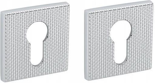 Kolekcja: TEXTURE Rozeta: kwadratowa, 5 mm Kolor: chrom Wersja: na wkładkę Tekstura: T2, kamyki/pebbles Grubość drzwi: 36-44 mm (do grubszych drzwi, max. 60 mm – dedykowany jest zestaw montażowy Tupai 0055-16) dostępny na innych aukcjach Kraj pochodzenia: Portugalia Elementy zestawu: 2 rozety 2 śruby przelotowe M4, 2 dociski imbusowe i klucz. materiał wykonania: mosiądz