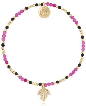 Bransoletka By Dziubeka BTW2835 Surowiec: mosiądz. Kolor surowca: złoty. Kamienie: turmaliny, jadeity. Wielkość kamieni: 0,24 cm. Wielkość zawieszki: 0,94 cm x 0,88 cm. Wielkość bransoletki: 5,30 cm bez rozciągania.