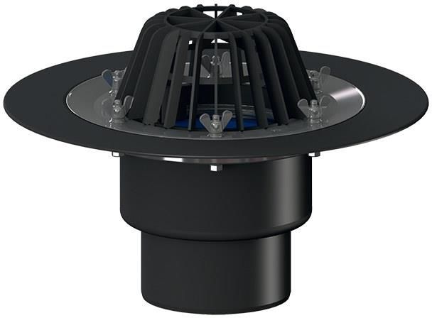 Wpust dachowy grawitacyjny DN110 pionowy z koszem na liście i stalowym pierścieniem skręcanym Międzyrzecz