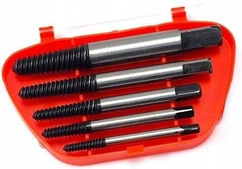 WYKRĘTAKI DO URWANYCH ZERWANYCH ŚRUB 3-18 MM SPECYFIKACJA PRODUKTU Wykrętaki do śrub 3-18 mm Komplet wykrętaków do urwanych śrub z tzw. „lewym" gwintem. Dzięki lewostronnemu gwintowi łatwo wkręcisz wykrętak w zniszczoną śrubę czy szpilkę i usuniesz zniszczoną śrubę bez narzędzi udarowych. Zestaw zawiera 5 wykrętaków do najczęściej używanych średnic śrub: 3-6 mm 6-8 mm 8-11 mm 11-14 mm 14 -18 mm Całość zamknięta w poręcznym, plastikowym pudełeczku. Końcówki wykrętaków kwadratowe.