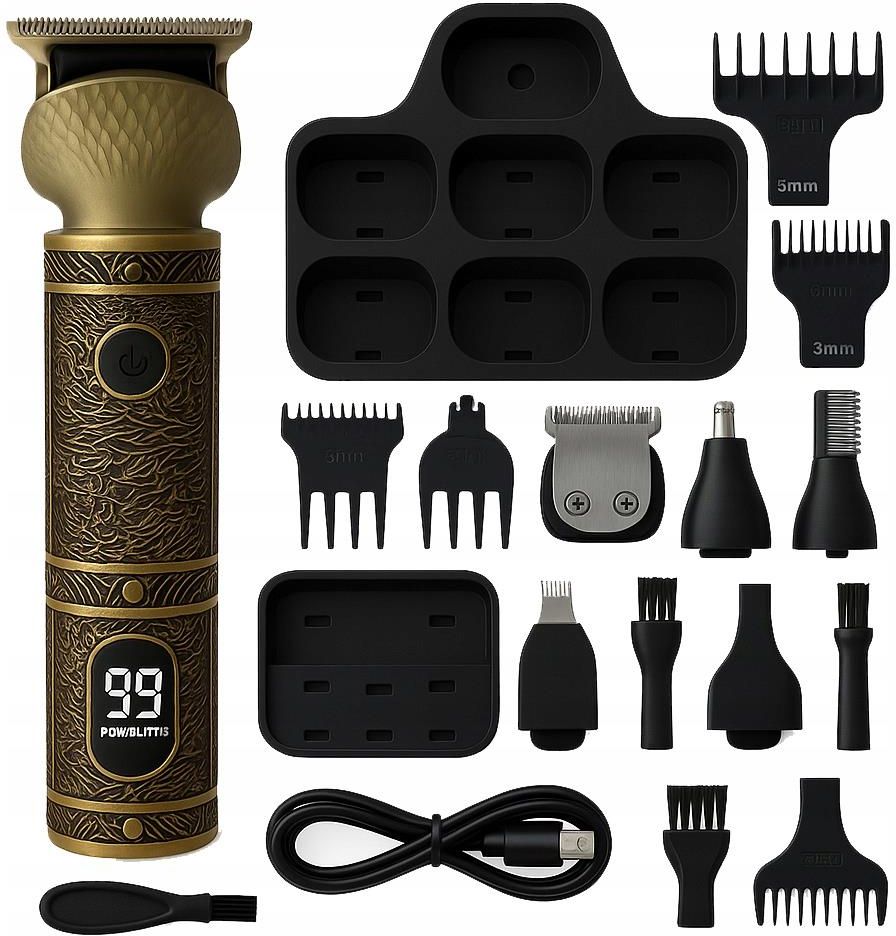 Maszynka do strzyżenia włosów, brody i ciała 7w1 – trymer Riwall Włochaty Przedstawiamy Riwall Włochaty – profesjonalną, wielofunkcyjną maszynkę 7w1 do włosów, zarostu i ciała. Świetnie sprawdzi się zarówno w domu, jak i w profesjonalnym salonie. Z tym urządzeniem zawsze zadbasz o idealny wygląd, bez konieczności wizyt u fryzjera. Co otrzymujesz w zestawie Maszynka Riwall Włochaty 4 nakładki regulujące długość cięcia: 1,5 mm / 2 mm / 3 mm / 4 mm Grzebień do stylizacji Osłona ochronna na ostrze Pędzelek do czyszczenia Kabel ładowania USB-C Dane techniczne – Riwall Włochaty Zasilanie: akumulator, ładowanie przez USB-C Pojemność akumulatora: 1450 mAh Czas pracy: do 120 minut na jednym ładowaniu Czas ładowania: około 120 minut Ostrze: stal nierdzewna typu T-Blade, precyzyjne i trwałe Regulacja długości: 4 nakładki – 1,5 mm, 2 mm, 3 mm, 4 mm Wyświetlacz: LCD z poziomem baterii Poziom hałasu: ok. 55 dB (bardzo cicha praca) Wymiary: około 16 cm długości, uchwyt szerokości 3,5 cm Design: eleganckie, oldschoolowe złote wykończenie Użytkowanie: bezprzewodowe, wygodne w podróży Zestaw zawiera Maszynka Riwall Włochaty 4 nakładki do regulacji długości Grzebień do stylizacji Osłona ochronna na ostrze Pędzelek do czyszczenia Kabel ładowania USB-C ✨ Najważniejsze cechy Riwall Włochaty 7w1 – strzyżenie włosów, brody, wąsów i ciała ✂️ Ostrze T-Blade ze stali nierdzewnej – precyzyjne i trwałe cięcie ⚡ Akumulator 1450 mAh – do 120 minut pracy po naładowaniu � USB-C – szybkie i wygodne ładowanie w 120 minut 📊 Wyświetlacz LCD – informuje o poziomie baterii 🔇 Cicha praca (55 dB) – komfortowe strzyżenie 🎚️ 4 nakładki: 1,5 / 2 / 3 / 4 mm 🎩 Stylowy design oldschool gold – wyjątkowy wygląd urządzenia 🧳 Mobilność – bezprzewodowe użytkowanie, idealne w podróży 🧼 Łatwe czyszczenie – zdejmowane ostrza + pędzelek w zestawie Dlaczego warto wybrać Riwall Włochaty? ✅ Kompleksowa pielęgnacja: włosy, broda i ciało – jedno urządzenie do wszystkiego ✅ Mocny akumulator – aż do 2 godzin pracy ✅ Cicha i komfortowa praca – tylko 55 dB ✅ Wygodne ładowanie USB-C – zawsze pod ręką ✅ Nowoczesny wygląd z oldschoolowym charakterem Zalety Riwall Włochaty Wszechstronność – jednym urządzeniem pielęgnujesz zarówno włosy na głowie, jak i brodę, wąsy i części ciała. Regulacja długości i różne nakładki – daje wiele możliwości stylizacji. Długi czas pracy bez ładowania – idealny, jeśli często podróżujesz lub zależy Ci na wygodzie. Cicha i komfortowa praca – mało hałasu, dzięki czemu możesz używać go w każdym momencie dnia. Stylowy wygląd – eleganckie, oldschoolowe detale przyciągają wzrok i stanowią wartość dodaną. Dodatkowe informacje Zasilanie: akumulator + ładowanie przez USB-C Używanie bezprzewodowe – brak plątaniny kabli, pełna mobilność. Utrzymanie: ostrza łatwe do demontażu, instrumentalne czyszczenie — dołączony pędzelek. Gwarancja i serwis: produkt objęty standardową gwarancją producenta. Dlaczego warto Jeśli szukasz solidnej maszynki 7w1, która łączy elegancję, wygodę i dobre parametry techniczne — Riwall Włochaty to idealny wybór. Doskonały prezent dla siebie lub bliskiej osoby, która ceni zadbany wygląd. Najważniejsze cechy Riwall Włochaty ✂️ 7w1 – do włosów, brody i ciała ⚡ 120 min pracy na pełnym ładowaniu USB-C – szybkie i wygodne ładowanie LCD – kontrola poziomu baterii �️ 4 długości cięcia – 1,5 / 2 / 3 / 4 mm 🎩 Stylowy oldschoolowy design