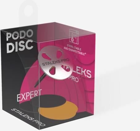 Dysk do pedicure STALEKS EXPERT M (20 mm) + 5 szt. zmiennych nakładek 180 grit, zestaw Dla maksymalnego bezpieczeństwa klienta opracowano dysk-osnowę do pedicure STALEKS PRO Pododisc. Jest lekki dzięki otworom, które ułatwiają pracę. Praca z dyskiem-osnową jest jak najbardziej bezpieczna dla stylistki i klienta: zdejmowana nakładka ścierna jest naklejana na osnowę, wykonywany jest pedicure, a potem nakładka jest wyrzucana. Solidna metalowa osnowa jest dezynfekowana i sterylizowana. Co wyróżnia dysk-osnowę do pedicure STALEKS PRO Pododisc PDset-20: wykonany ze stali medycznej; nie rdzewieje przy prawidłowym użytkowaniu; jest lekki i nie przegrzewa się dzięki otworom-kropelkom; bezpieczny dzięki wymiennym jednorazowym nakładkom; można sterylizować w autoklawie; można dezynfekować w środkach dezynfekujących; skutecznie usuwa szorstką skórę na stopach pasuje do wszystkich standardowych frezarek, przyspiesza wykonanie pedicure. Do dysku pasują wymienne nakładki: -80 grit PDF-20-80w; -100 grit PDF-20-100w; -180 grit PDF-20-180w; -240 grit PDF-20-240w; -polerka PDFB-20.