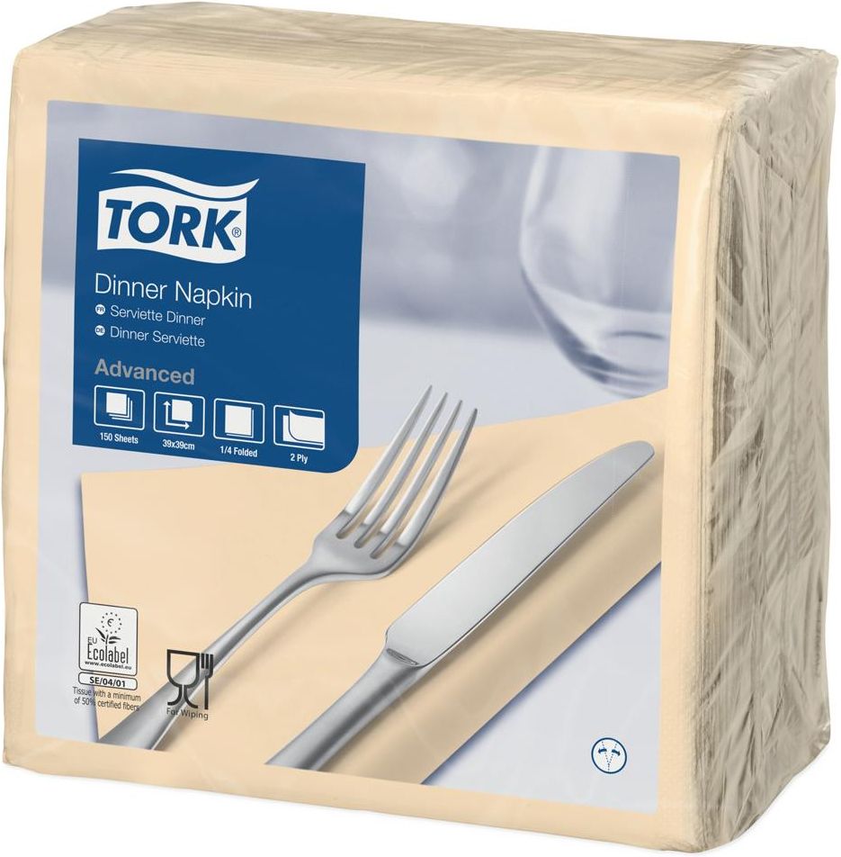 Tork Dinner Napkin Tork serwetka obiadowa. Cechy produktu: Wysoka jakość dwuwarstwowa celulozowa serwetka miękka i chłonna Idealne do miejsc, które chcą wywrzeć wrażenie na gościach jakością, ale preferują jednorazowe serwetki Dopuszczone do kontaktu z żywnością. Posiadają etykietę EU Ecolabel Funkcje Tork Easy HandlingTM: łatwo otworzyć, łatwo przenosić i zutylizować Karton zawiera 12 opakowań x 150 serwetek Czas realizacji określany "Na zamówienie" oznacza, że towar nie jest magazynowany i czas oczekiwania może wydłużyć się, ze względu na indywidualne zamówienie u producenta.