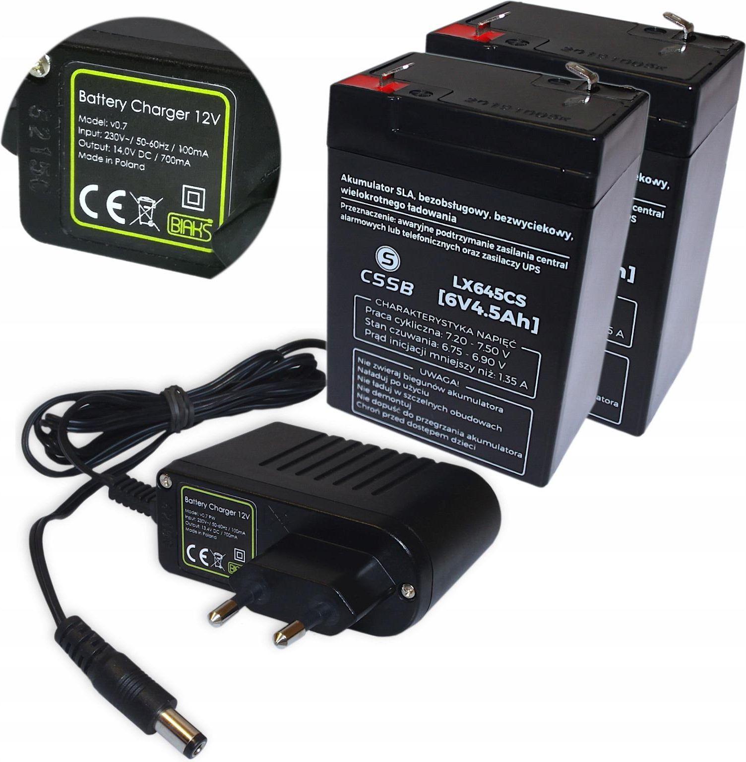 Biaks Zestaw Do Autka 2x akumulator 6V 4,5Ah +ładowarka Mielec