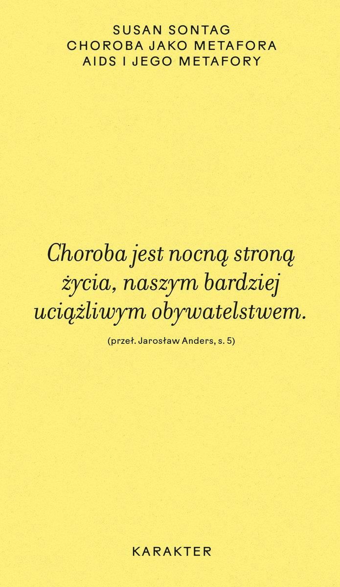 Opis Dwa słynne eseje, które weszły do kanonu humanistyki. Analizując źródła naukowe i utwory literackie od antyku po czasy współczesne (odwołując się choćby do Homera, Baudelaire'a, Manna, Joyce'a czy Audena) Susan Sontag rekonstruuje mitologię gruźlicy i choroby nowotworowej. Pokazuje przy tym sposoby, w jakie społeczeństwo stygmatyzuje chorych i demistyfikuje ideologiczne fantazmaty, które zmierzają do demonizacji niektórych chorób. Drugi esej, napisany pod koniec lat 80., jest pionierską analizą AIDS i społecznych wyobrażeń, jakie towarzyszyły pojawieniu się tej choroby. Współczesne ruchy totalitarne, zarówno prawicowe, jak i lewicowe, miały szczególną – i bardzo charakterystyczną – inklinację do symboliki choroby. Naziści głosili, że osoba „nieczysta rasowo” przypomina syfilityka. Żydzi europejscy byli ustawicznie przyrównywani do syfilisu i raka, którego należy wyciąć. Metafory choroby były na porządku dziennym w retoryce bolszewików i Trocki, najbardziej utalentowany polemista komunistyczny, używał ich w wielkiej obfitości – zwłaszcza po wygnaniu ze Związku Radzieckiego w 1929 roku. Stalinizm przyrównywał do cholery, syfilisu i raka. Kiedy zjawiska polityczne przyrównuje się obrazowo jedynie do chorób śmiertelnych, metafora zyskuje charakter szczególnie kategoryczny. Obecnie, kiedy zdarzenia lub sytuacje polityczne przedstawiane są w przenośni jako choroby, mamy do czynienia z wskazywaniem czyjejś winy i domaganiem się kary. [fragment książki] O autorce Susan Sontag Urodziła się w 1933 roku, zmarła w roku 2004. Jedna z najważniejszych intelektualistek XX wieku. Jej znakami rozpoznawczymi były zawsze niezależność myśli i pełne pasji zaangażowanie. Autorka ważnych tekstów, które podważały przyjęte sposoby myślenia i wyznaczały nowe horyzonty humanistyki: Przeciw interpretacji , O fotografii , Zapiski o kampie , Choroba jako metafora . Pisała także powieści, m.in. Zestaw do śmierci , Miłośnik wulkanów , W Ameryce . Obrończyni praw człowieka, występowała przeciw wojnie w Wietnamie, w czasie stanu wojennego wspierała „Solidarność”, a w 1993 roku w oblężonym Sarajewie wystawiła Czekając na Godota . Zawsze niepokorna, odważna i nieznosząca schematycznych uproszczeń, w ostrym tekście sprzeciwiła się propagandzie uprawianej przez rząd Busha po atakach z 11 września.