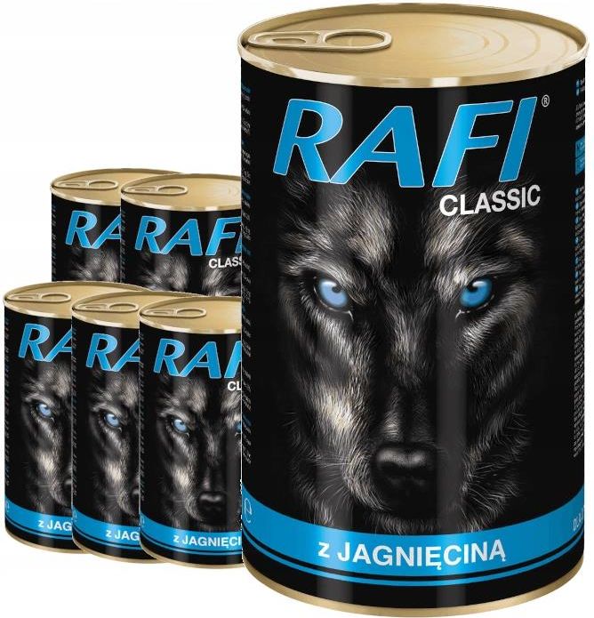 Karma pełnoporcjowa dla dorosłych psów wszystkich ras – kawałki z jagnięciną w sosie - PAKIET 18x1240g Karma RAFI CLASSIC jest pełnoporcjową bytową karmą dedykowaną psom dorosłym. Wyróżnia się wysoką strawnością składników odżywczych. Surowce pochodzenia zwierzęcego zostały dobrane z uwzględnieniem wymagań żywieniowych psów, które ukończyły pierwszy rok życia. Dzięki wysokiej zawartości (68%) składników pochodzenia zwierzęcego, w tym jagnięciny, karma jest źródłem wysokiej jakości pełnoporcjowego białka i niezbędnych w diecie psów kwasów tłuszczowych. To właśnie jagnięcina jest surowcem kompleksowo uzupełniającym profil kwasów tłuszczowych w karmie. Odpowiednia wartość odżywcza oraz optymalna gęstość energetyczna karmy RAFI CLASSIC zapewnia właściwy pasaż jelitowy i optymalne wchłanianie składników odżywczych z karmy. Skład:mięso i produkty pochodzenia zwierzęcego 68% w kawałkach (w tym 4% jagnięciny), zboża, substancje mineralne, cukry. Dodatki: Witamina A - 1100 IU, Witamina D3 – 150 IU, Witamina E - 10 mg, Cynk (siarczan cynku jednowodny) - 10 mg, Mangan (tlenek manganu) - 2 mg, Miedź (siarczan miedzi, pięciowodny) - 1,4 mg. Składniki analityczne: białko surowe – 6,5%, tłuszcz surowe – 4%, popiół surowy – 2,5%, włókno surowe – 0,5%, wilgotność – 81,5%.