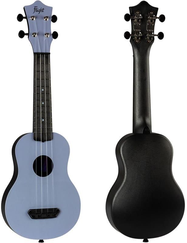 ‌Fog is a light, warm, cloudy gray with a pearly undertone. This unique shade of gray is the inspiration behind our new Flight Fog Ultra uke. The Flight Fog Ultra Travel Ukulele is a polycarbonate reinforced plastic soprano travel ukulele with a thin, resonant, and responsive lattice-braced soundboard and fluorocarbon strings, creating a bright and punchy sound. With a zero fret and precision engineering, the instrument features ideal action and excellent intonation for an enjoyable playing experience, and the slotted bridge makes string changes easy to accomplish. If you’re looking to add a unique and versatile ukulele to your collection, the Flight Fog Ultra Travel is the one for you! Space age materials and construction Polycarbonate Reinforced Plastic The Flight Ultra Soprano Ukulele is made of polycarbonate reinforced plastic, welded together with an ultrasonic process. The ukulele has an ultra-thin lattice-braced soundboard, creating one of the loudest plastic-based ukuleles on the market. Let's play Molded neck and fingerboard The neck and fingerboard of the Flight Ultra Soprano Travel Ukulele are made from the same polycarbonate reinforced plastic as the rest of the ukulele. The material is resistant to changes in temperature and humidity, and has excellent action. Say goodbye to sharp fret ends and warped necks! Great intonation Zero fret, integrated saddle, and fluorocarbon strings The Flight Ultra Soprano Travel ukulele features a zero fret and integrated non-adjustable saddle, which keeps the string action low and intonation on point. To top it off, the ukulele comes with Flight fluorocarbon strings, which feel great, sound awesome, and intonate properly. It all starts with the head A familiar look and easy to tune Headstock design is an integral part of our identity. Flight is often recognized for our travel ukuleles, and the headstock of the Flight Ultra Soprano Travel Ukulele is meant to be reminiscent of the headstock design of the travel series. All Flight ukuleles are fitted with smooth operating, high quality geared tuners. Fasten your seat belts Strap button included The Flight Ultra Soprano Travel Ukulele has a rounded back, which can make it more difficult to hold for some players. We added a single strap button to assist players that need a strap to more comfortably hold their ukulele. We offer a selection of affordable, quality Flight Ukulele Straps which would make a great accessory for your ukulele! Cinch it up! Awesome drawstring bag Every Flight ukulele includes a gig bag. The Flight Ultra Soprano Travel Ukulele does not require a lot of protection, and as such, comes with a high quality drawstring bag that provides a way to transport the ukulele more comfortably and protect the strings from damage. Instructional booklet Learn in style. Every Flight ukulele includes a beginner’s guide and a set of stickers from Flight Ukulele. The eight-page beginner’s guide is packed with all the information you need to start playing, including chord charts, strumming patterns, and chord progressions for your first drills. And you can use the stickers to show your pride in owning a Flight ukulele! Specifications Every tiny detail matters. Body Body Shape: Soprano (12 frets) Top: Reinforced Polycarbonate Plastic Back & Side: Reinforced Polycarbonate Plastic Bridge: Reinforced Polycarbonate Plastic Color: Gray Strings: Flight Fluorocarbon Strings (Note: please do not use wound strings or strings with metal particles in them on this ukulele, as these types of strings can damage the frets and fretboard of the instrument) Strap Button: Yes Neck Neck: Reinforced Polycarbonate Plastic Fretboard: Reinforced Polycarbonate Plastic Nut & Saddle: Integrated with neck & bridge Zero Fret: Included Nut Width: 37,3mm Other Position Markers: 5th, 7th and 10th frets. Premium Features: Polycarbonate Reinforced Plastic Construction, Rounded Back, Flight Fluorocarbon Strings, Strap Button, Zero Fret, Thin Soundboard with Lattice Bracing, Slotted Bridge, Front and Side Position Markers, Open Geared Tuners, and Drawstring Gig Bag. This instrument is also available in various colors and designs.