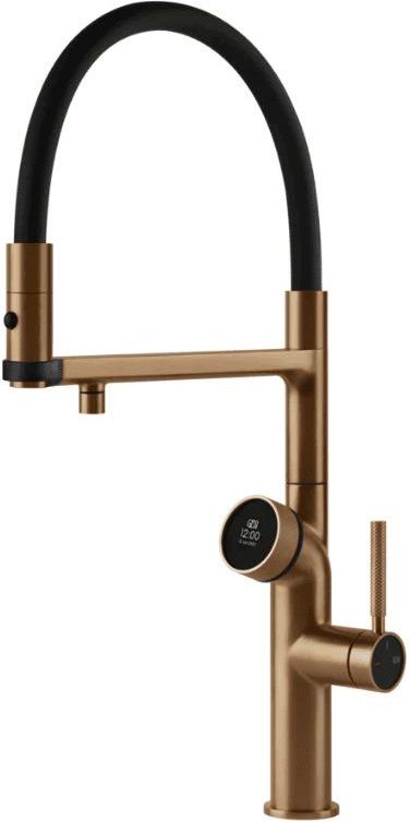 VITA Gessi™ – luksusowa bateria kuchenna z inteligentnym systemem wody z wodą ciepłą i zimną VITA Gessi™ to rewolucja w świecie baterii kuchennych – pierwszy model z cyfrowym interfejsem, który zapewnia maksymalną funkcjonalność, elegancję i wygodę. To wybór dla tych, którzy od codziennych przedmiotów oczekują czegoś więcej – designu, technologii i troski o środowisko. Woda, jakiej potrzebujesz – zawsze pod ręką VITA Gessi™ pozwala cieszyć się wodą filtrowaną dokładnie taką, jaką lubisz: – zimną, gorącą, wrzącą lub gazowaną – a wszystko to z zachowaniem najwyższej czystości i bezpieczeństwa. Zintegrowany cyfrowy interfejs umożliwia szybki wybór rodzaju i ilości wody, a także zapis aż 24 spersonalizowanych ustawień. Wystarczy jedno dotknięcie, by napełnić szklankę, butelkę lub filiżankę wodą w idealnej temperaturze i ilości. Luksus spotyka technologię Bateria VITA Gessi™ została zaprojektowana z myślą o najbardziej wymagających użytkownikach. Minimalistyczna forma, elegancki panel sterujący i intuicyjne ikony sprawiają, że każdy kontakt z urządzeniem jest przyjemnością. Korzyści, które odczujesz od razu: pełna kontrola nad temperaturą i ilością wody, trzy poziomy nasycenia CO₂ w wodzie gazowanej, oszczędność czasu i wygoda – bez konieczności gotowania wody czy chłodzenia w lodówce, natychmiastowy dostęp do wody wrzącej (100°C) – idealnej do herbaty czy gotowania. Dostosowana do Twojego stylu życia Z myślą o różnych potrzebach, system dostępny jest w trzech wersjach funkcjonalnych: z wodą zimną, z wodą ciepłą, lub z wodą ciepłą i wodą zimną Bateria idealnie komponuje się z różnymi aranżacjami kuchni – od nowoczesnych po klasyczne – dzięki aż siedmiu wyjątkowym wykończeniom: Warm Bronze Br. PVD Chrome Matte Black Finox Brushed Nickel Black Metal Br. PVD Copper Brushed PVD Brass Brushed PVD. Komfort użytkowania na najwyższym poziomie Profesjonalna wylewka obraca się o 360°, zapewniając pełną swobodę ruchu. Boczne pokrętło pozwala wygodnie sterować przepływem wody, a wyciągana końcówka ułatwia mycie większych naczyń i zlewu. Specyfikacja techniczna – bez kompromisów: wysokość baterii: 514 mm, zasięg wylewki: 228 mm, wysokość wypływu wody: 290 mm, średnica otworu montażowego: 35 mm, w zestawie: elastyczne węże przyłączeniowe i końcówka typu handshower. Ekologia i bezpieczeństwo w jednym systemie Zaawansowane tryby pracy – Eco, Holiday i Cleaning – pomagają oszczędzać wodę i energię nawet wtedy, gdy z baterii nie korzystasz. VITA Gessi™ dba także o bezpieczeństwo – system wykrywa ewentualny wyciek i automatycznie odcina dopływ wody. Nagrodzona designem, stworzona z myślą o przyszłości VITA Gessi™ została laureatem prestiżowej nagrody iF Design Award 2023 w kategorii Product Design/Kitchen. Jury doceniło ją za połączenie technologii z intuicyjną obsługą, możliwość personalizacji oraz elegancki, ponadczasowy styl. VITA Gessi™ to coś więcej niż bateria – to serce nowoczesnej, świadomej kuchni. Wybierz rozwiązanie, które codzienność zamienia w luksusowy rytuał.