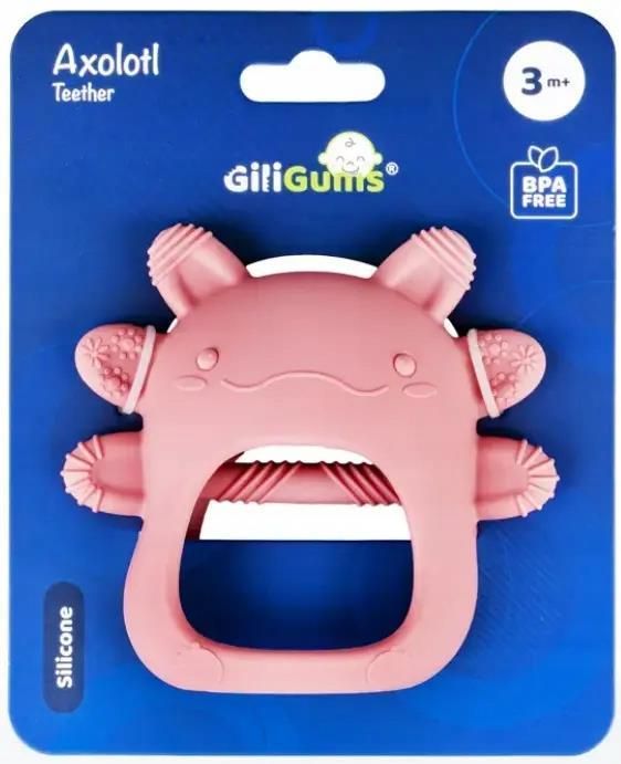 GILIGUMS – SILIKONOWY GRYZAK AKSOLOTL RÓŻOWY | WYGODNY UCHWYT • WPUSTKI • 3m+ Uroczy, różowy Aksolotl Giligums to gryzak, który przynosi ulgę w trudnym okresie ząbkowania, a przy tym wspiera rozwój sensoryczny dziecka. Dzięki miękkiej, elastycznej konstrukcji wykonanej z bezpiecznego silikonu, …