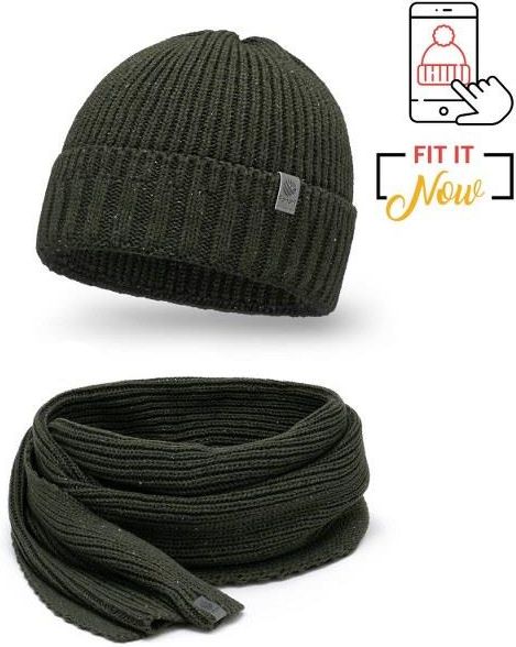Komplet Męski PaMaMi Czapka Szalik Khaki Mielec