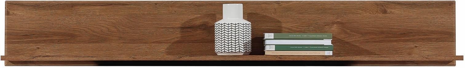 Półka wisząca ścienna na ścianę dąb april IVO IV11 Półka wisząca IVO IV11 pozwala zyskać dodatkową przestrzeń na niewielkie elementy i ozdoby w pokoju dziennym oraz w salonie. Świetnie sprawdzi się, wisząc nad szafką RTV z tej samej kolekcji. Prosta forma IVO IV11 w połączeniu z ciekawą kolorystyką w odcieniu dąb april sprawi, że twoje mieszkanie będzie prezentowało się stylowo. Model IV11 pochodzi z kolekcji IVO składającej się z 13 segmentów systemu. Mebel pakowany w częściach do samodzielnego montażu, wraz z czytelną instrukcją i akcesoriami montażowymi. Wymiary Szerokość: 150,5 cm Głębokość: 23 cm Wysokość: 22 cm Wykończenie Konstrukcję tworzy solidna, wytrzymała i odporna na uszkodzenia płyta laminowana wysokiej jakości. Dodatkowym zabezpieczeniem krawędzi jest trwałe obrzeże ABS. Wybarwienie Kolor korpusu: dąb april Fotografie