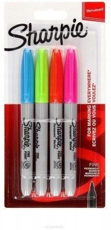 Marker Permanentny Uniwersalny SHARPIE 4SZT SHARPIE FINE to kreatywny marker permanentny, do pisania po różnych [powierzchniach i materiałach. Marker dostępny w wielu kolorach. Doskonale nadaje się do oznaczania kartonu, papieru fotograficznego, tektury, drewna, metalu, folii, kamienia, tworzywa sztucznego, skóry i wielu innych powierzchni. Szybkoschnący tusz, nie zawiera ksylenu i toulenu. Nasadka z klipsem. Grubość linii pisania 0,9 mm.