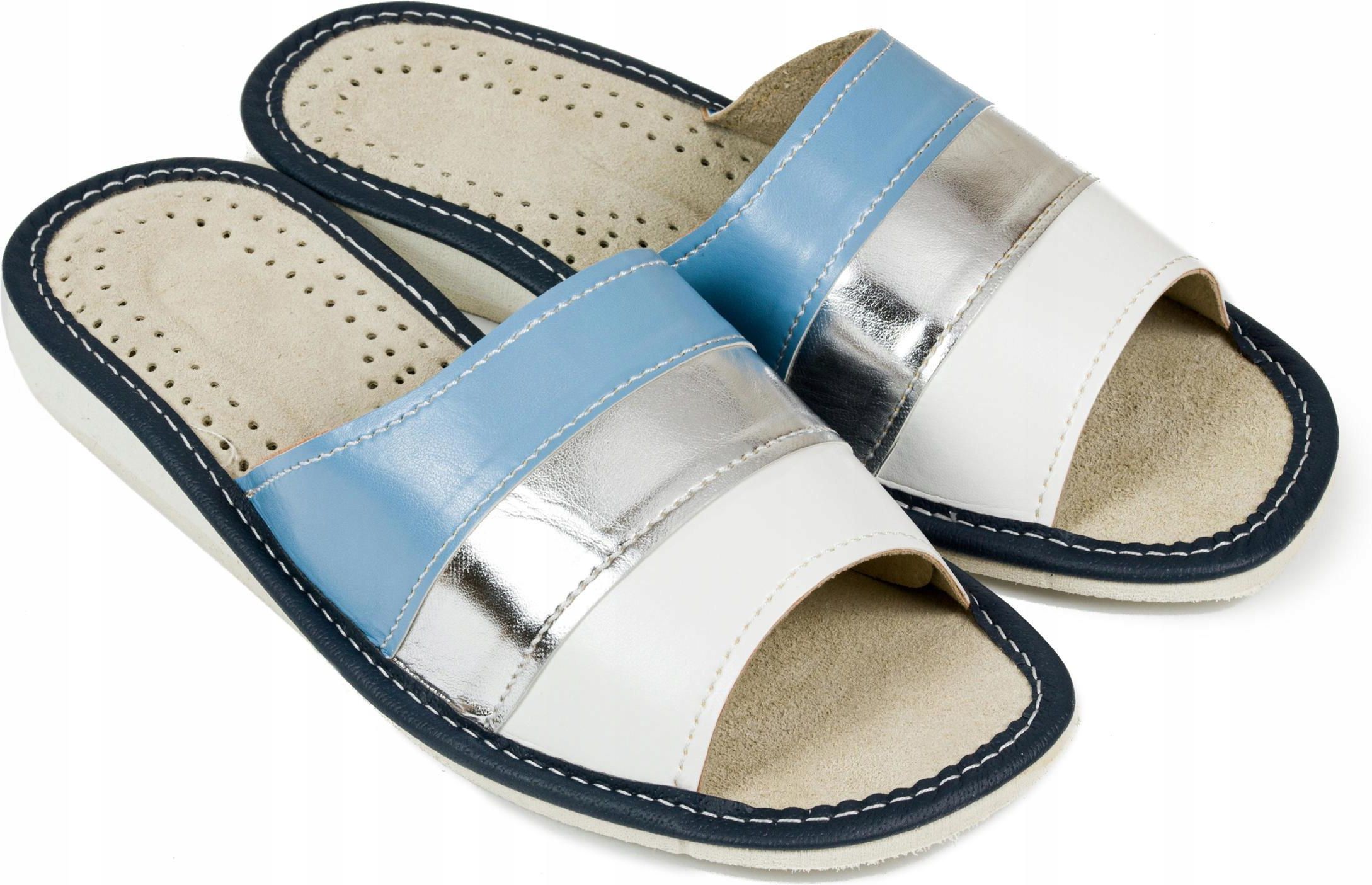 Pantofle Damskie Kapcie Niebieskie Skórzane r. 39 Mielec