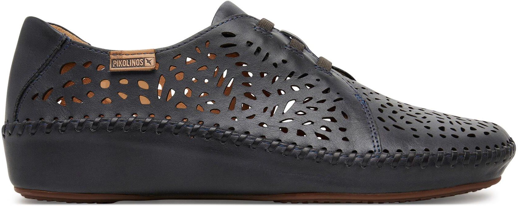 Granatowe półbuty damskie marki Pikolinos to idealny wybór dla każdej kobiety ceniącej wygodę i elegancję. Wykonane z wysokiej jakości skóry naturalnej licowej, zapewniają trwałość oraz komfort noszenia przez cały dzień. Ich klasyczny design w połączeniu z modnym granatowym kolorem sprawia, że świetnie komponują się zarówno z casualowymi, jak i bardziej wizytowymi stylizacjami. Dodatkowym atutem jest gumowy klin w cholewce, który gwarantuje swobodę ruchów oraz idealne dopasowanie do stopy. Te półbuty to niezastąpiony element każdej garderoby, który doda szyku każdej kreacji!