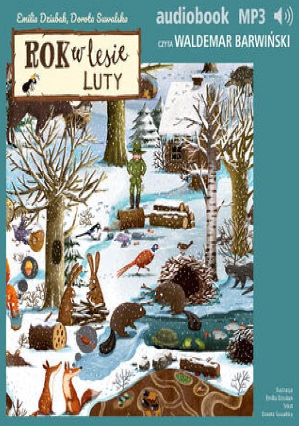Bestsellerowa książka Emilii Dziubak teraz także do słuchania – z odgłosami lasu i wyjątkowym narratorem! W lutowym lesie dzięcioł chroni się w budce lęgowej, ryjówka buszuje w kreciej spiżarni, a łasica szuka nowej kryjówki. Wśród leśnych ścieżek rozbrzmiewają pierwsze ptasie zaloty, a lisy i wilki łączą się w pary. „Rok w lesie. Luty” to drugi odcinek z cyklu dwunastu opowieści stworzonych przez Dorotę Suwalską na podstawie bestsellerowej książki Emilii Dziubak. Podczas słuchania historii opowiadanych przez wyjątkowego narratora – jest nim dąb, któremu głosu użyczył Waldemar Barwiński – możesz uważnie oglądać „Rok w lesie”, bo teksty audiobooka idealnie pasują do ilustracji. W nagraniu usłyszysz też realistyczne odgłosy zwierząt, które przeniosą cię w sam środek zimowego lasu. Pozwól, by las opowiedział ci o tym, co dzieje się w lutym między drzewami. Słuchaj w domu, w przedszkolu, w podróży lub przed snem. Dorota Suwalska pisarka, animatorka kultury, ilustratorka, dziennikarka, autorka scenariuszy. Nominowana do Astrid Lindgren Memorial Award 2013 i 2014. Współpracowała z TVP, realizując krótkie filmy plastyczne i felietony autorskie dla dzieci. W swoim dorobku ma trzy tomiki poetyckie oraz powieści dla dzieci i młodzieży: „Znowu kręcisz, Zuźka!", „Zuźka w necie i w realu", „Bruno i siostry" (wyróżnienie literackie w konkursie Polskiej Sekcji IBBY Książka Roku, nominacja do nagrody Kornela Makuszyńskiego, powieść na liście książek proponowanych przez Polski Instytut Książki), „Marionetki Baby-Jagi", „Ratunku, marzenia!", „Pan Fortepianek". Jej utwory tłumaczone były na hiszpański, słoweński, a także... na język przestrzeni. To ostatnie dotyczy literacko-internetowego projektu: „a" (dla dorosłych). Swoje wiersze, opowiadania i artykuły publikowała w prasie dziecięcej, literackiej i pedagogicznej, podręcznikach szkolnych. Współpracuje z portalem Emilia Dziubak – autorka i ilustratorka książek dla dzieci. Absolwentka Akademii Sztuk Pięknych w Poznaniu. Współpracuje z autorami i wydawnictwami w Polsce i za granicą. Laureatka Nagrody Literackiej . Warszawy w 2014 r. Laureatka nagrody „Przecinek i Kropka” w konkursie na najlepszą książkę dziecięcą w 2016 r. Wyróżniona w 2016 r. w konkursie PTWK Najpiękniejsze Książki Roku 2015 za autorską książkę „Rok w lesie”. Laureatka nagrody „Żółta Ciżemka” w 2017 r. W 2018 r. wyróżniona w konkursie Książka Roku Polskiej Sekcji IBBY. Laureatka nagrody Soligatto 2019. Powyższy opis pochodzi od wydawcy