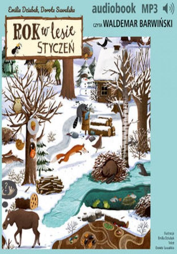 Bestsellerowa książka Emilii Dziubak teraz także do słuchania – z odgłosami lasu i wyjątkowym narratorem! W styczniowym lesie żubr obgryza korę, sroki kłócą się o ostatnie owoce głogu, a wilki szykują się do polowania. Wśród ośnieżonych drzew pojawia się też ktoś zupełnie niespodziewany… „Rok w lesie. Styczeń” to pierwszy odcinek z cyklu dwunastu opowieści stworzonych przez Dorotę Suwalską na podstawie bestsellerowej książki Emilii Dziubak. Podczas słuchania historii opowiadanych przez wyjątkowego narratora – jest nim dąb, któremu głosu użyczył Waldemar Barwiński – możesz uważnie oglądać „Rok w lesie”, bo teksty audiobooka idealnie pasują do ilustracji. W nagraniu usłyszysz też realistyczne odgłosy zwierząt, które przeniosą cię w sam środek zimowego lasu. Pozwól, by las opowiedział ci o tym, co dzieje się w styczniu między drzewami. Słuchaj w domu, w przedszkolu, w podróży lub przed snem. Dorota Suwalska pisarka, animatorka kultury, ilustratorka, dziennikarka, autorka scenariuszy. Nominowana do Astrid Lindgren Memorial Award 2013 i 2014. Współpracowała z TVP, realizując krótkie filmy plastyczne i felietony autorskie dla dzieci. W swoim dorobku ma trzy tomiki poetyckie oraz powieści dla dzieci i młodzieży: „Znowu kręcisz, Zuźka!", „Zuźka w necie i w realu", „Bruno i siostry" (wyróżnienie literackie w konkursie Polskiej Sekcji IBBY Książka Roku, nominacja do nagrody Kornela Makuszyńskiego, powieść na liście książek proponowanych przez Polski Instytut Książki), „Marionetki Baby-Jagi", „Ratunku, marzenia!", „Pan Fortepianek". Jej utwory tłumaczone były na hiszpański, słoweński, a także... na język przestrzeni. To ostatnie dotyczy literacko-internetowego projektu: „a" (dla dorosłych). Swoje wiersze, opowiadania i artykuły publikowała w prasie dziecięcej, literackiej i pedagogicznej, podręcznikach szkolnych. Współpracuje z portalem Emilia Dziubak – autorka i ilustratorka książek dla dzieci. Absolwentka Akademii Sztuk Pięknych w Poznaniu. Współpracuje z autorami i wydawnictwami w Polsce i za granicą. Laureatka Nagrody Literackiej . Warszawy w 2014 r. Laureatka nagrody „Przecinek i Kropka” w konkursie na najlepszą książkę dziecięcą w 2016 r. Wyróżniona w 2016 r. w konkursie PTWK Najpiękniejsze Książki Roku 2015 za autorską książkę „Rok w lesie”. Laureatka nagrody „Żółta Ciżemka” w 2017 r. W 2018 r. wyróżniona w konkursie Książka Roku Polskiej Sekcji IBBY. Laureatka nagrody Soligatto 2019. Powyższy opis pochodzi od wydawcy
