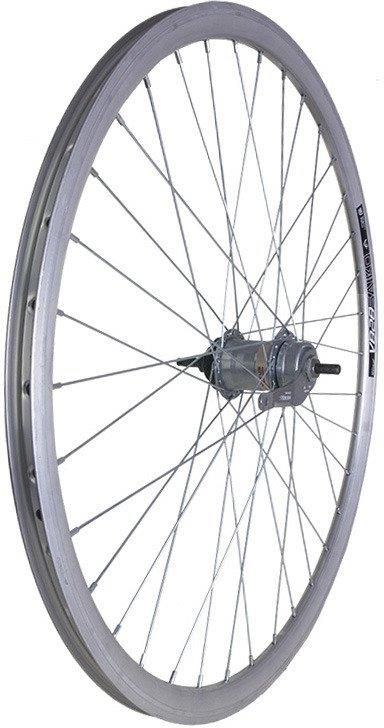 Koło tylne 28" piasta Shimano Nexus 3 biegi z osprzętem srebrne Kod produktu: 100047 Koło 28" dedykowane do roweru miejskiego. Zamontowane jest na lekkiej obręczy aluminiowej. Jego główne cechy to wytrzymałość i niezawodność. Zdjęcie podglądowe Rozmiar 28" Piasta Shimano Nexus 3 biegowa Obręcz stożkowa Piasta: producent: Shimano grupa producenta: Nexus model: SG-3C41 ilość biegów: 3 współczynnik przełożeń: 1. 0.733, 2. 1.000, 3. 1.360 rodzaj hamulca: wewnętrzny (torpedo ; 'w pedałach') kompatybilna zębatka: nakładana z mocowaniem '3 wpusty' o szerokości 2,3mm kompatybilny łańcuch: 1-rzęd. 1/2"x3/32" (wąski) oś: stalowa, 3/8"x168mm, na nakrętki długość mocująca (O.L.D.): 120mm korpus: stalowy kolor: srebrny