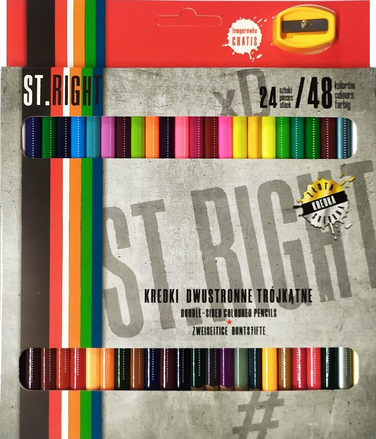 St. Majewski Kredki Ołówkowe Dwustronne Trójkątne 24/48 Kolorów + Temperówka St.Right Mielec