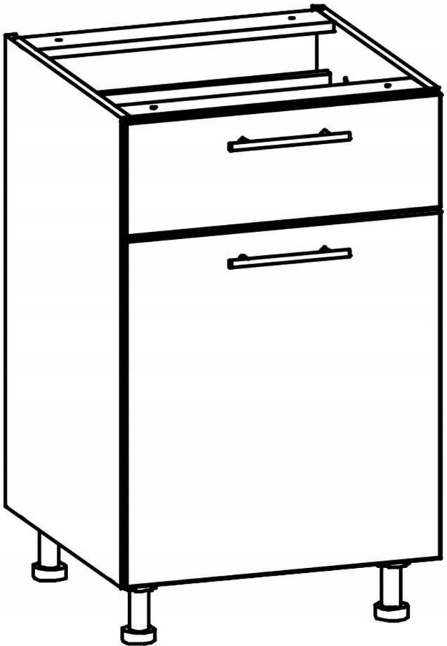 Szafka dolna Tiffany T-18/D50S1 (z blatem) Tiffany T-18/D50S1 to stojąca jednodrzwiowa szafka kuchenna z jedną półką w środku oraz jedną szufladą. Mebel sprawdzi się idealnie w nowoczesnej kuchni jako praktyczne miejsce służące do przechowywania sztućców oraz przyborów kuchennych. Korpus wykonano z …